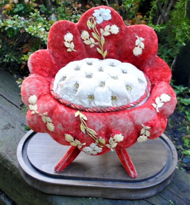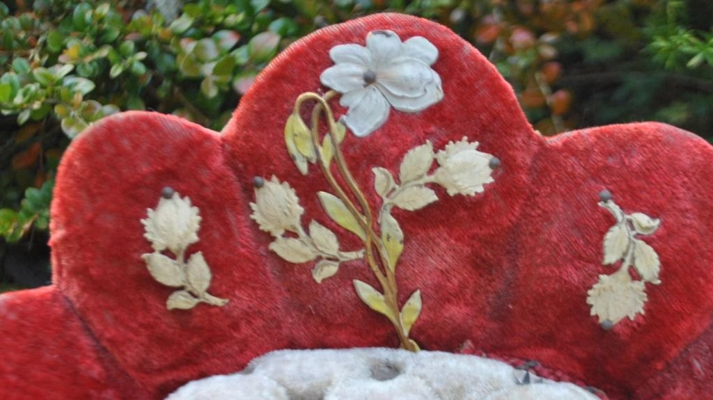 Der Stuhl wurde zur Präsentation von Schmuck und Hochzeitserinnerungsstücken genutzt.