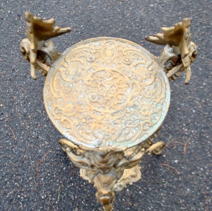 Eiserner Sockel, um 1870, Dänemark. Auf drei Beinen, verziert mit Engeln und Delfinen. Höhe: 75 cm.