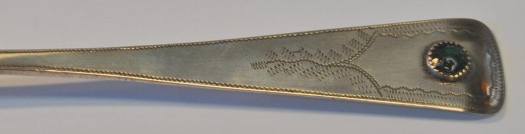 Peter Johannesen Petersen (1805 - 1873) Aabenraa, Dänemark: Silberlöffel mit grünen Glasflecken.