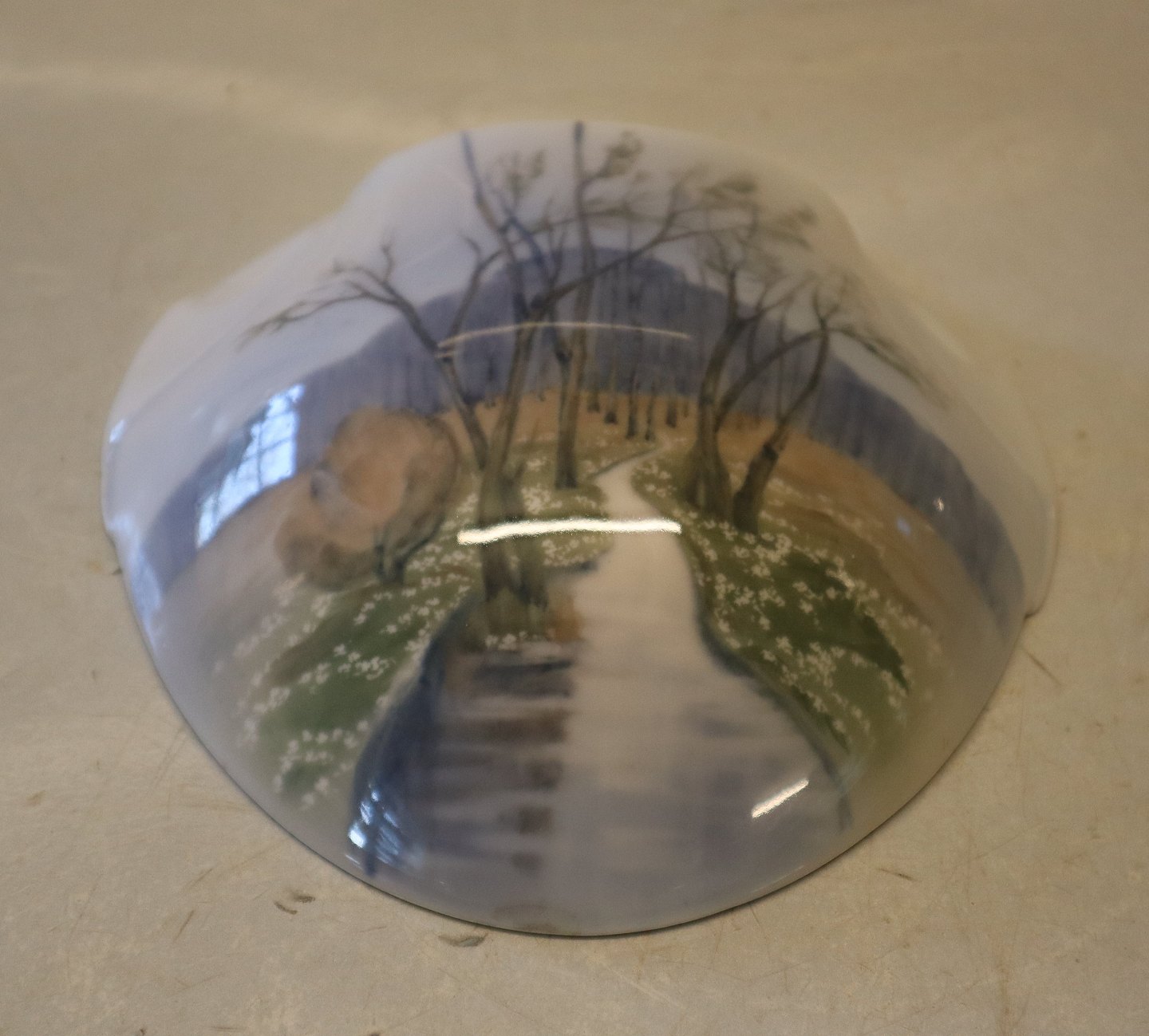 B&G 115-58 Art Nouveau vægvase - 18 x 18 cm træer langs bæk Bing & Grøndahl I fin og hel stand.