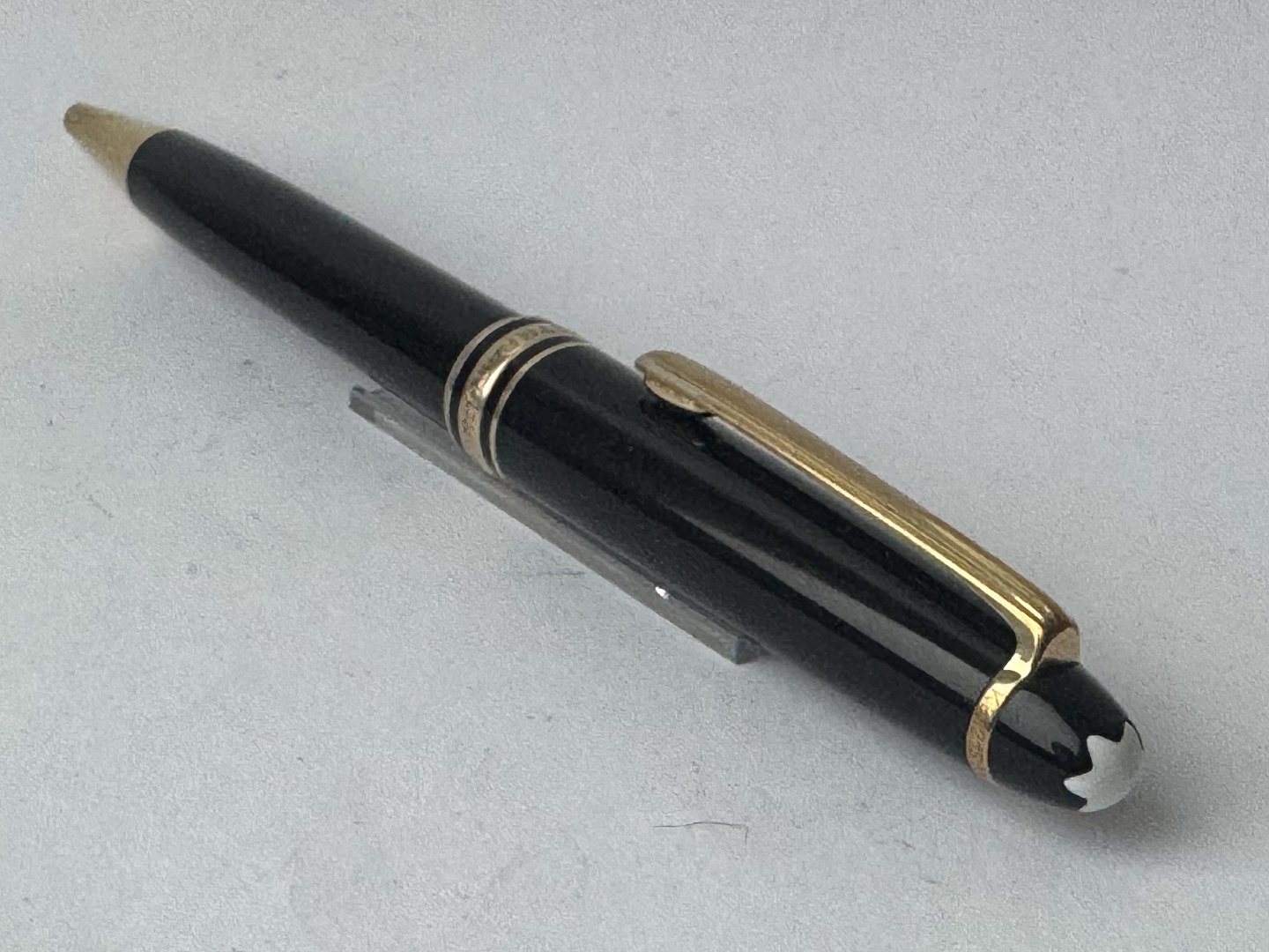 Slank sort Montblanc Meisterstück Classique kuglepen. Klar til at blive brugt med nyere refill. Fremstår i god stand. L. 13,5 cm