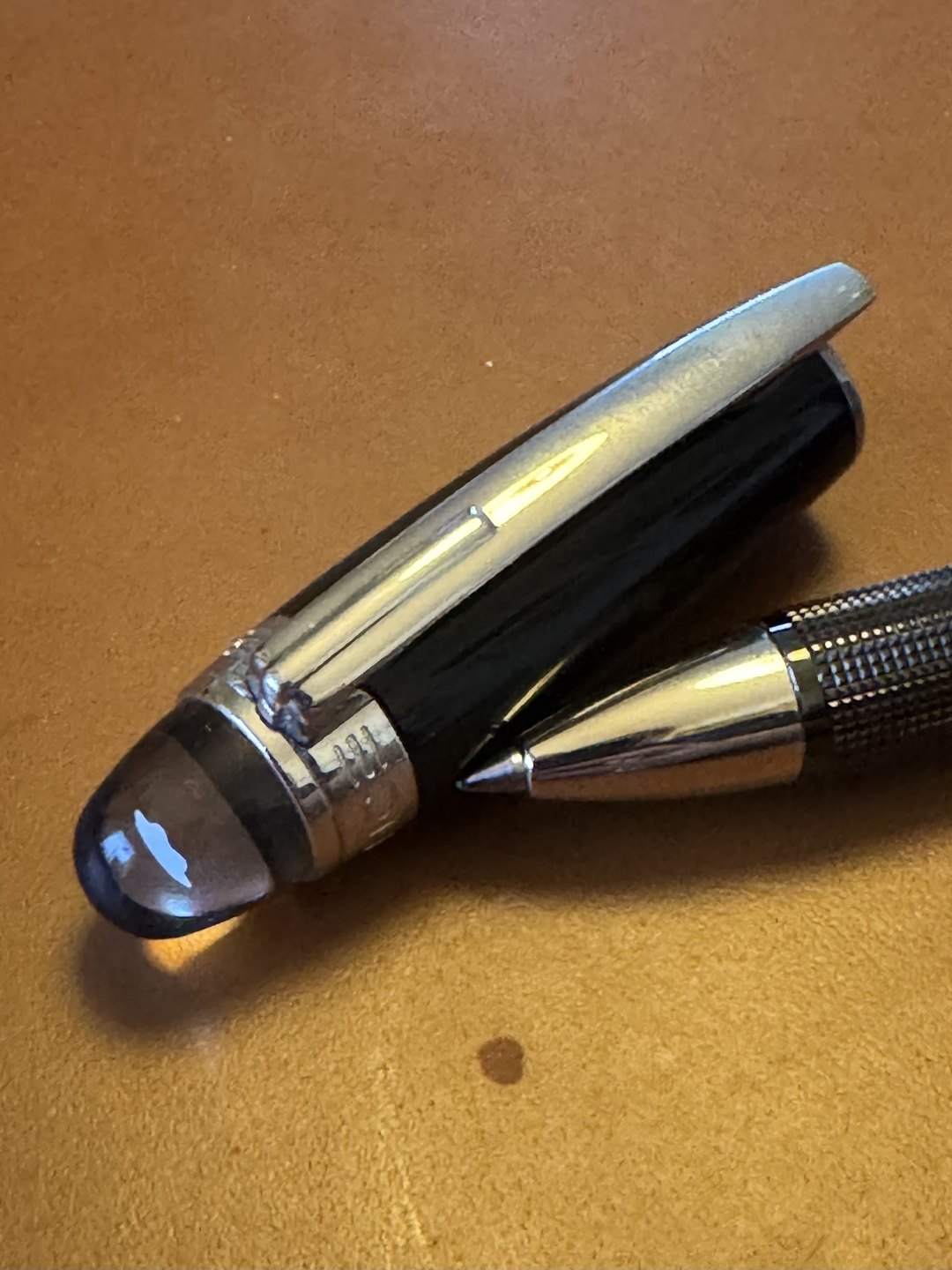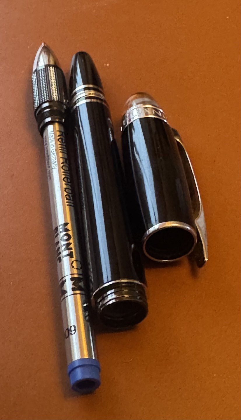 Sort Montblanc Starwalker rollerball pen. I god og skriveklar stand med ny refill. L. 14,2 cm.