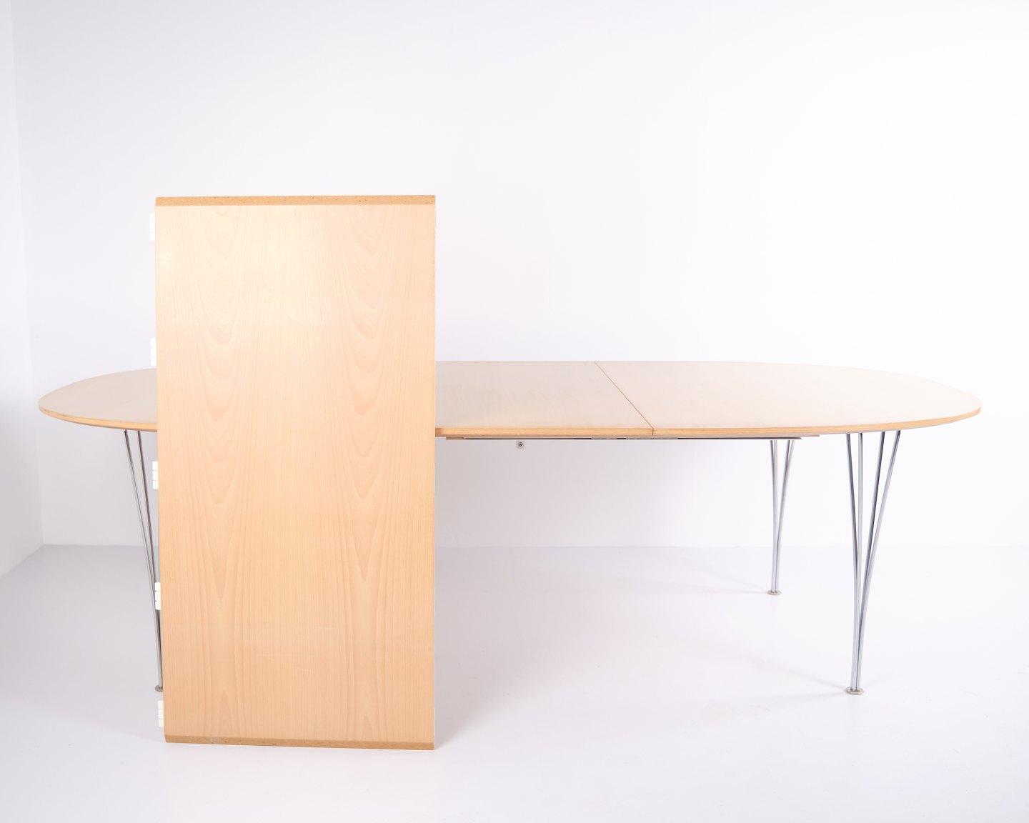 Super Ellipse Esstisch von Piet Hein & Bruno Mathsson für Fritz Hansen. Buchenholz mit 2 Einlegeplatten. Produziert 2001.