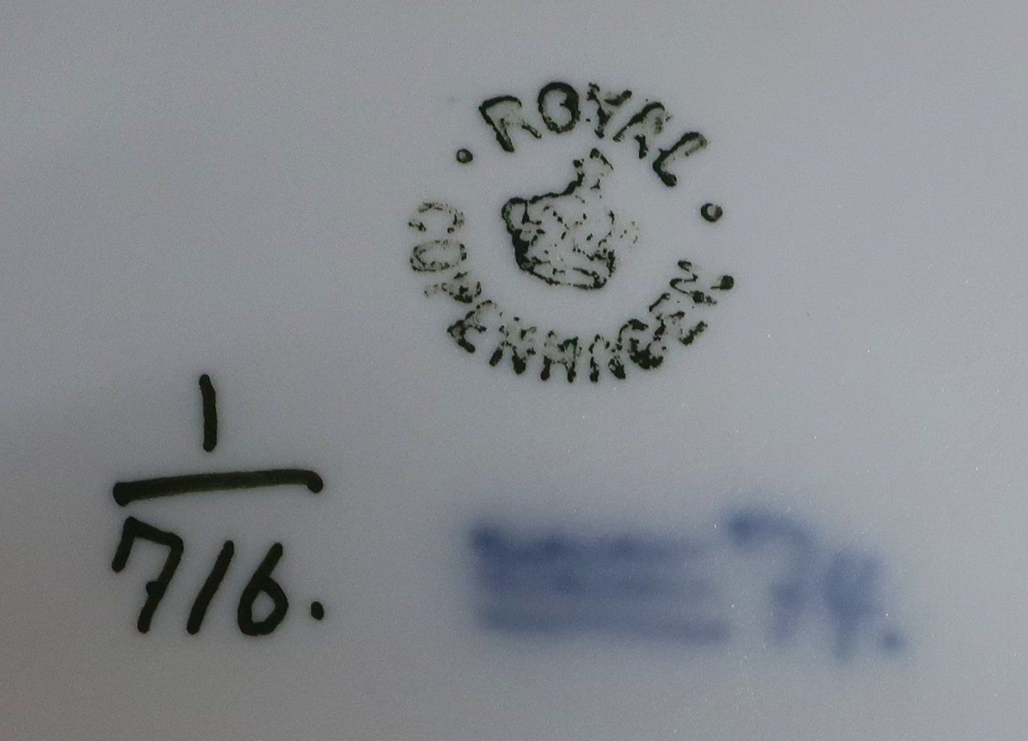 Königliches Kopenhagen. Musselmalet Halbspitze. Quadratisches Tablett. Modell 716. Länge 23,5 cm. Breite 15,5 cm (1 Wahl). Hergestellt vor 1923.