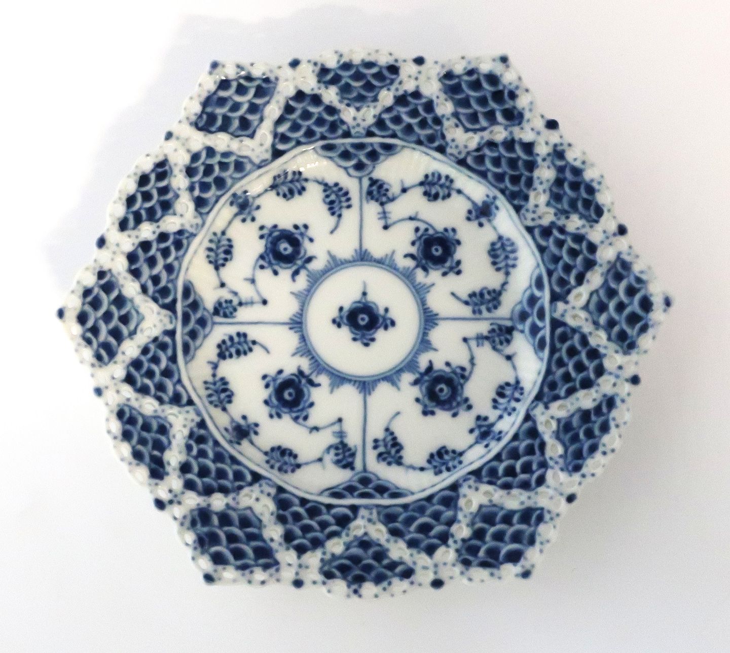 Royal Copenhagen. Musselmalet, Vollspitze. Kuchenplatte mit durchbrochenem Kante. Modell 1144. Durchmesser 17,5 cm. (1 Wahl)