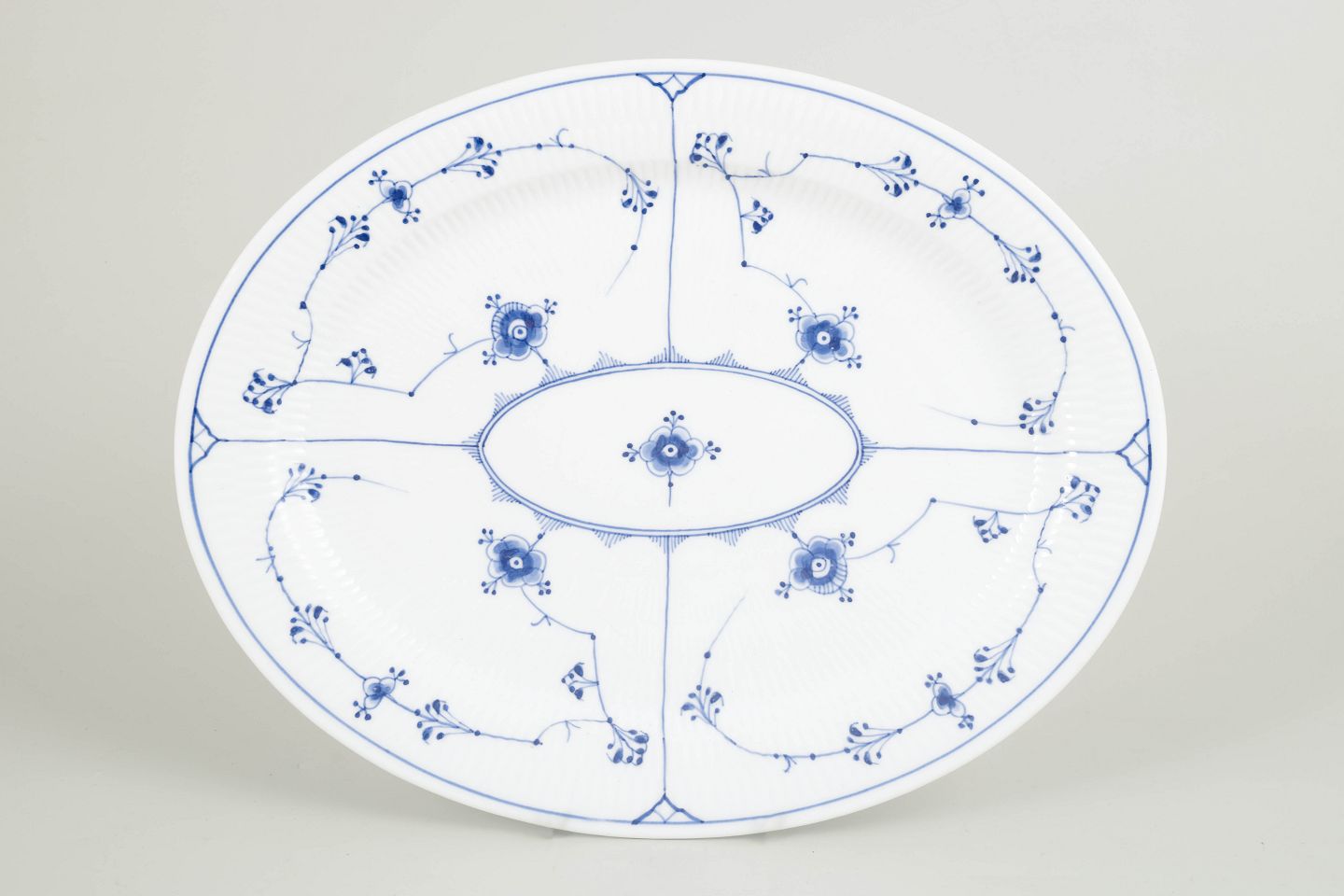 Musselmalet riflet ovalt serveringsfad, 1920’erne.