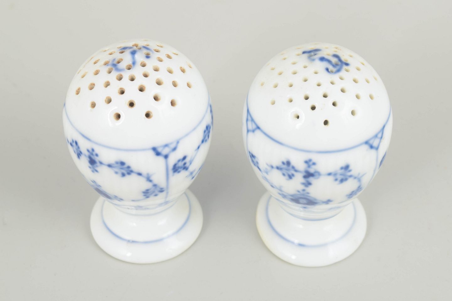 Musselmalet riflet salt- og pebersæt, ca. 1900.