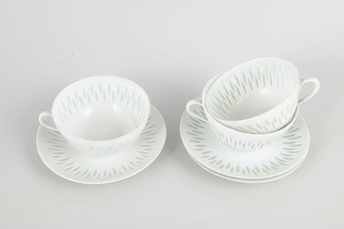 Sæt af tre tekopper med underkopper, 1970’erne.
