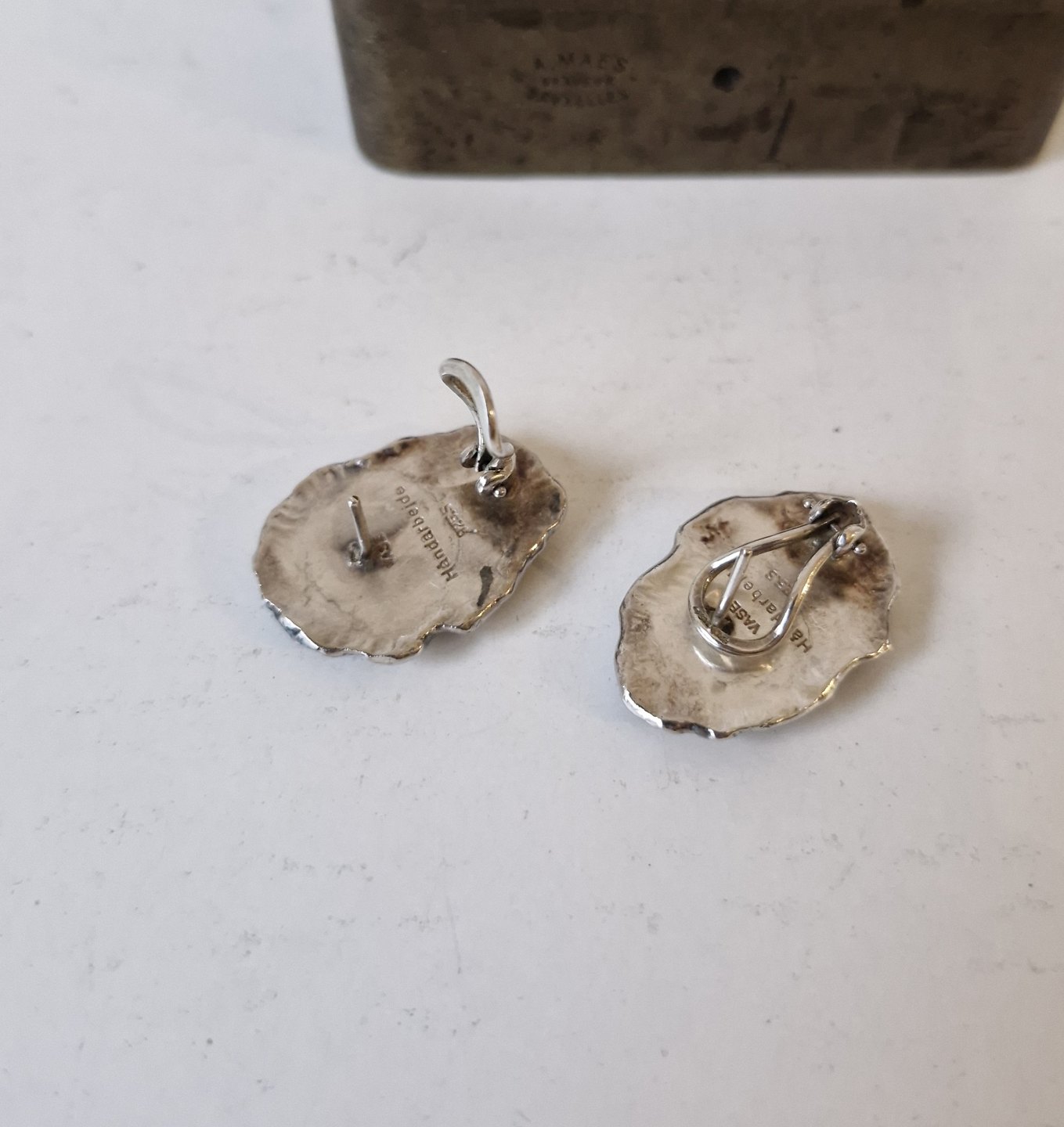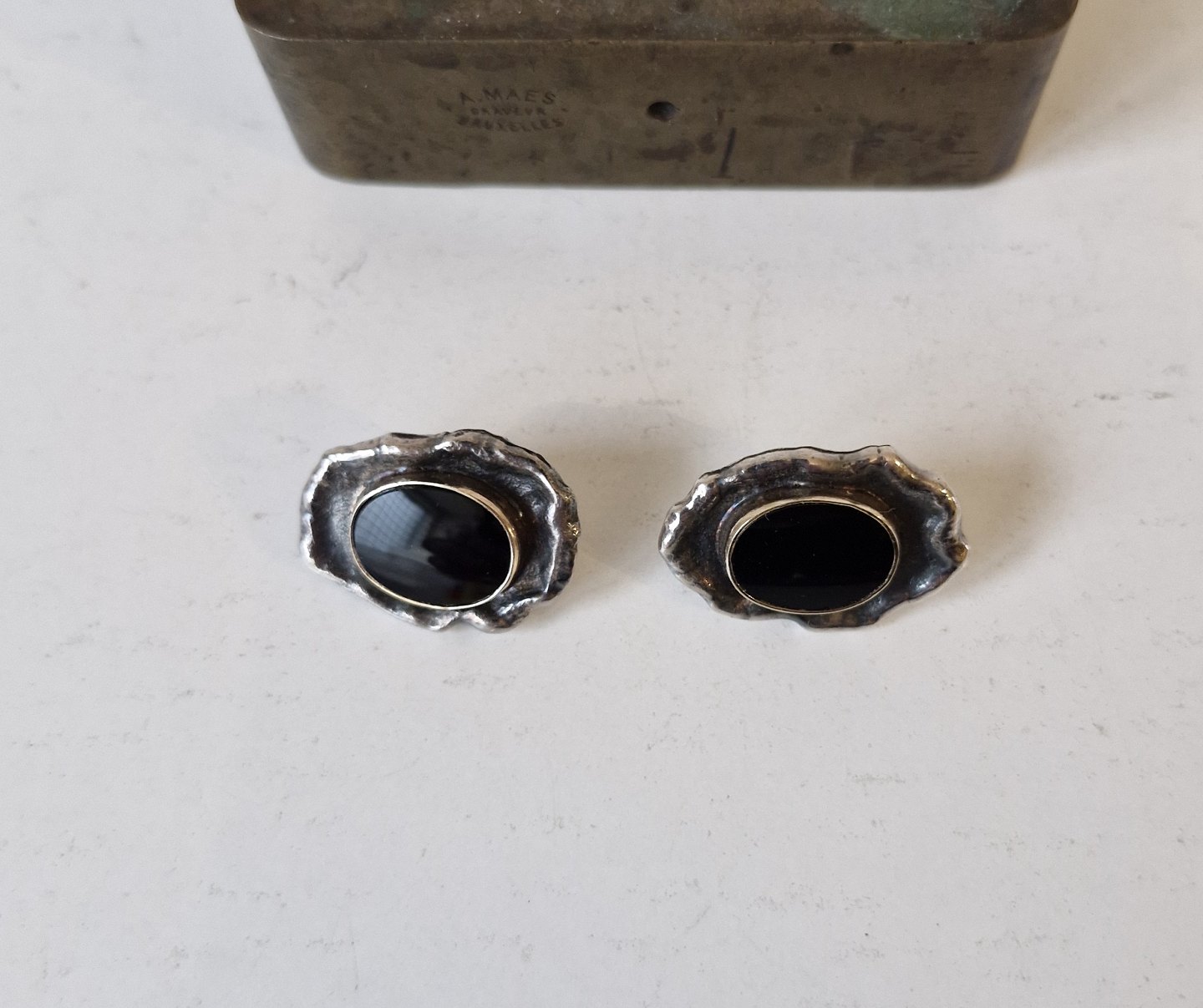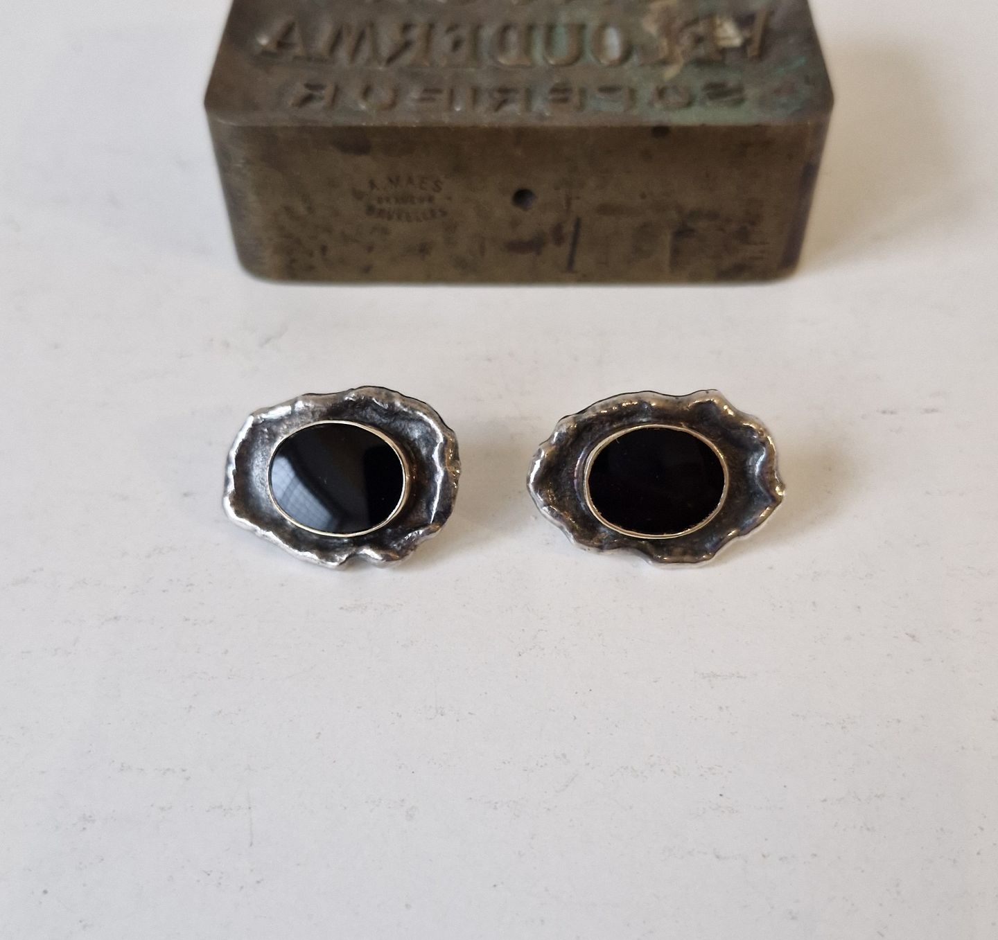 Text zugänglich auf Dänische: Par store ørestikker i sterlingsølv med onyx af Niels Gunni Vase