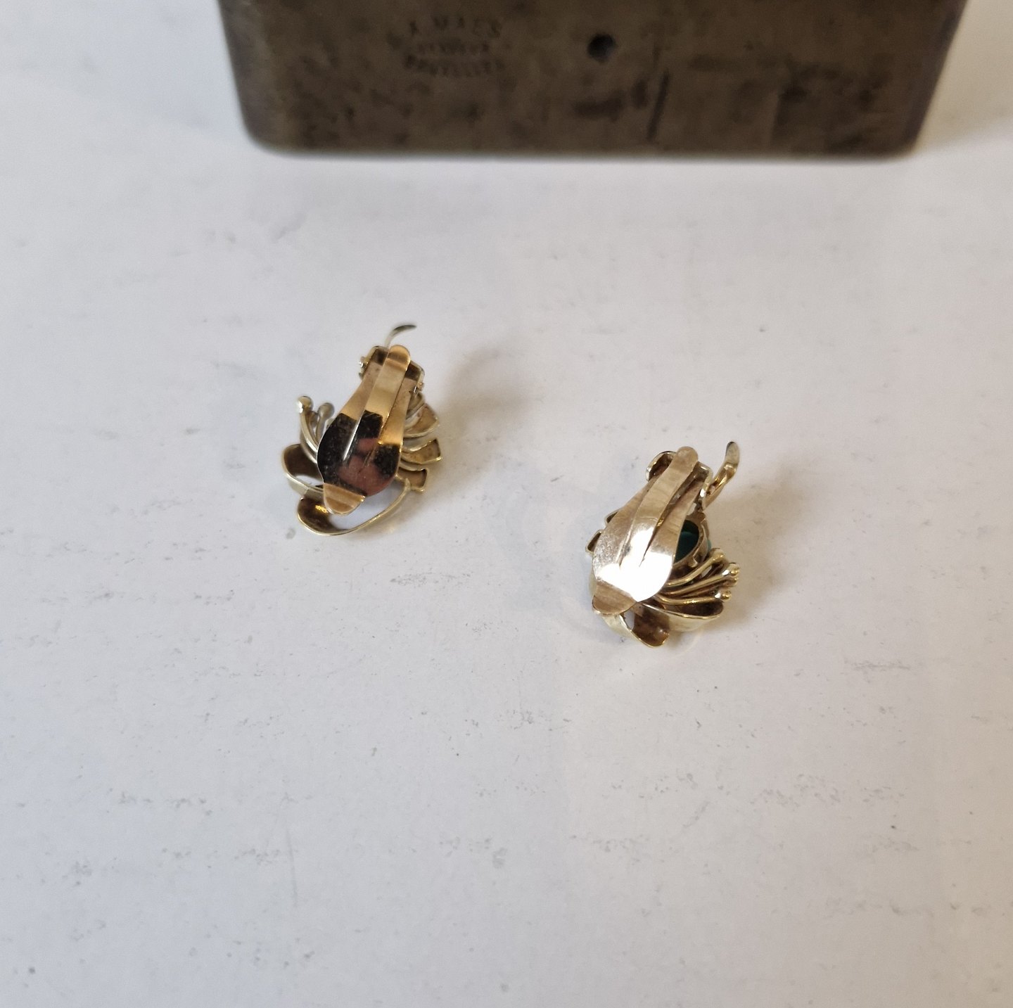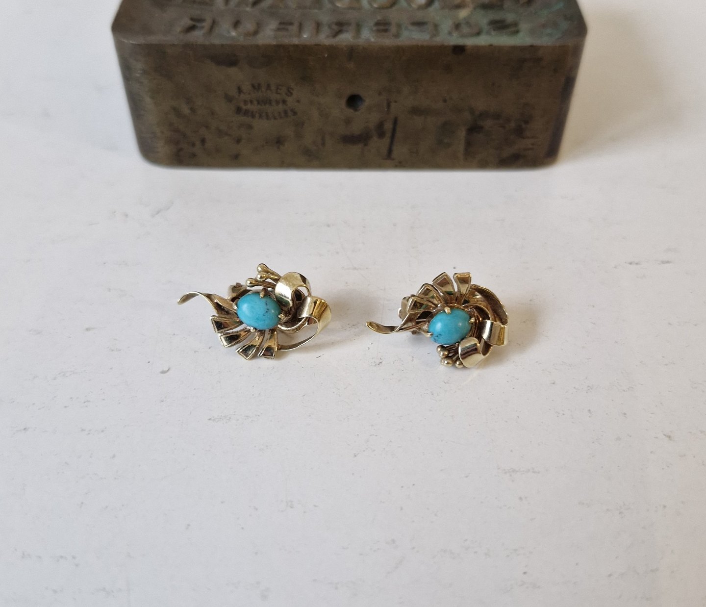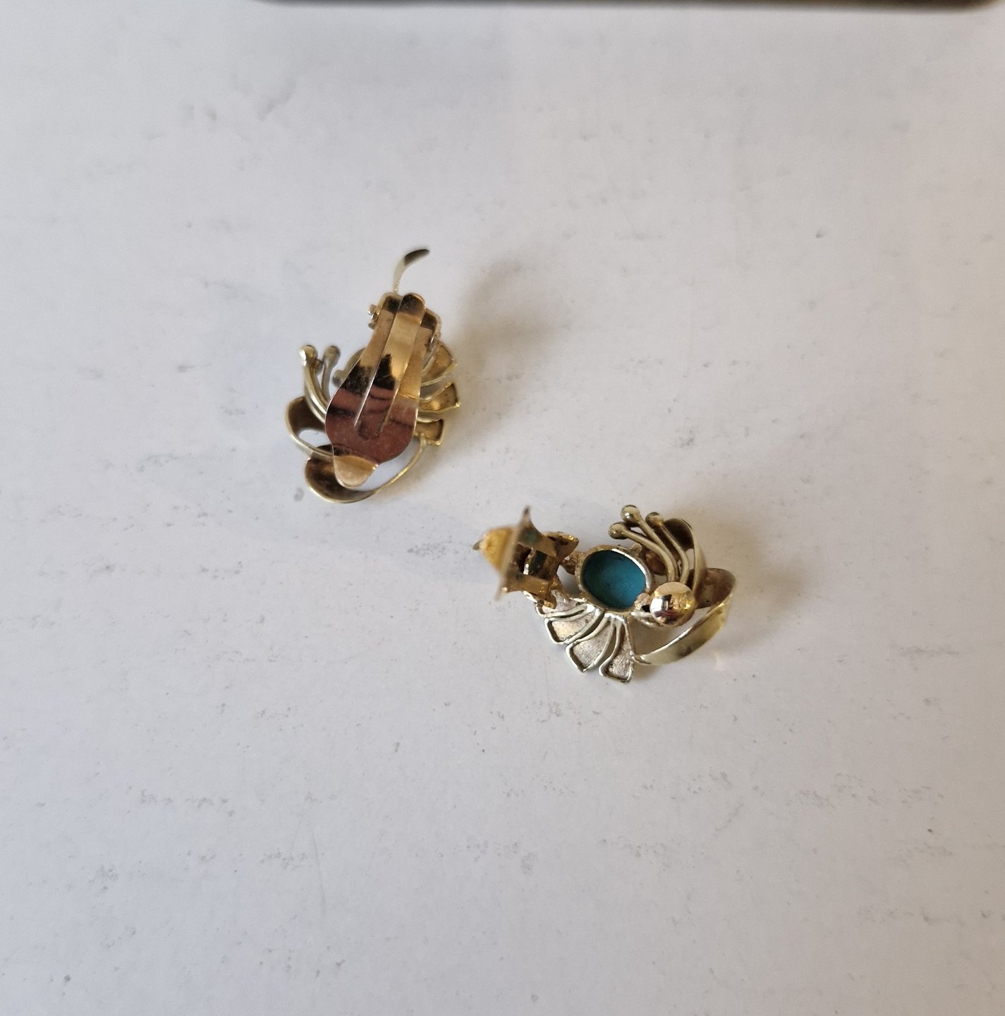 Text zugänglich auf Dänische: Par smukke øreklips i 14 kt guld med turkis