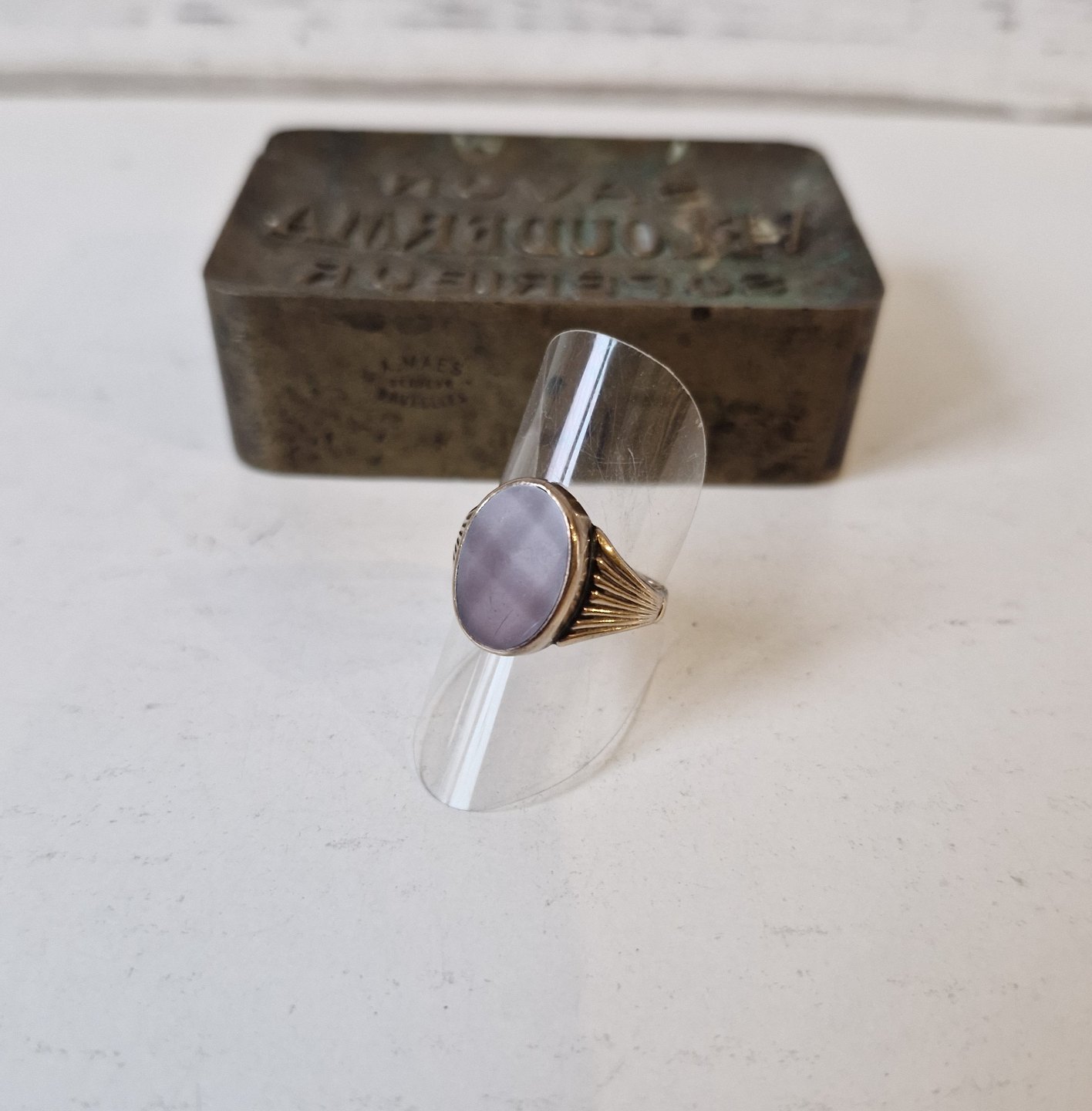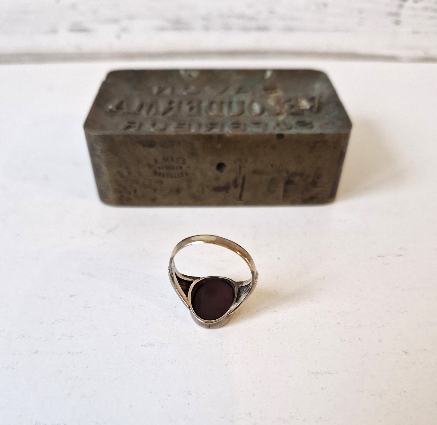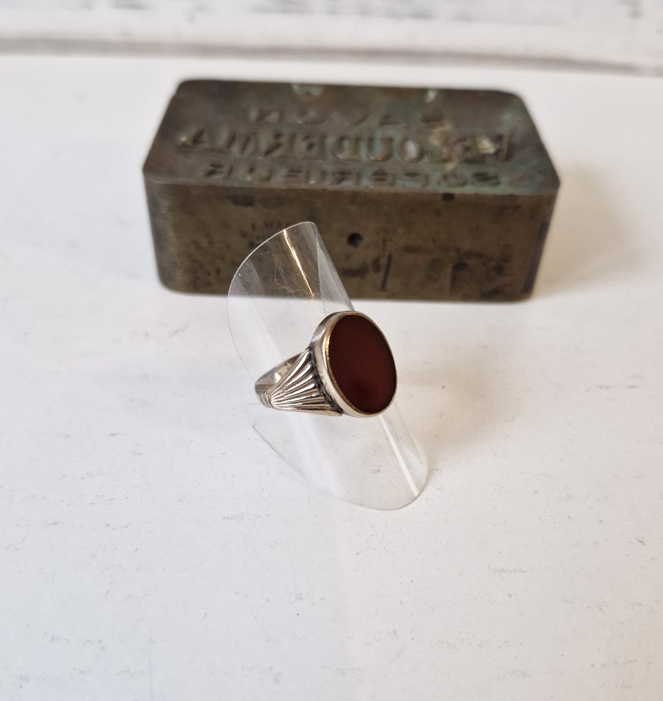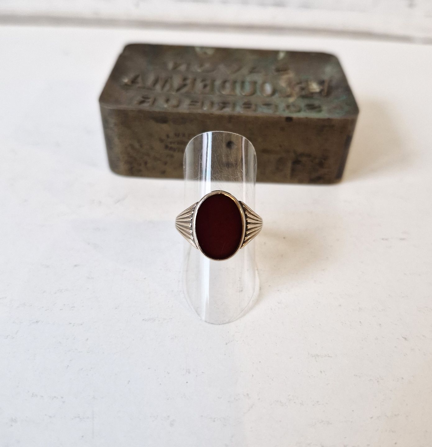 Text zugänglich auf Dänische: Vintage herrering i 8 kt guld med karneol af Harald Emil Herbst