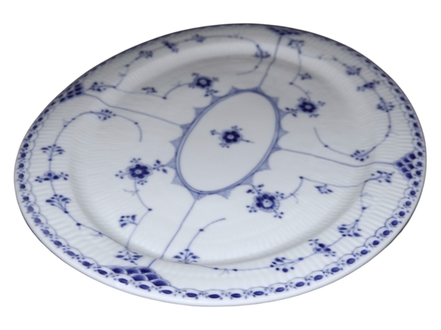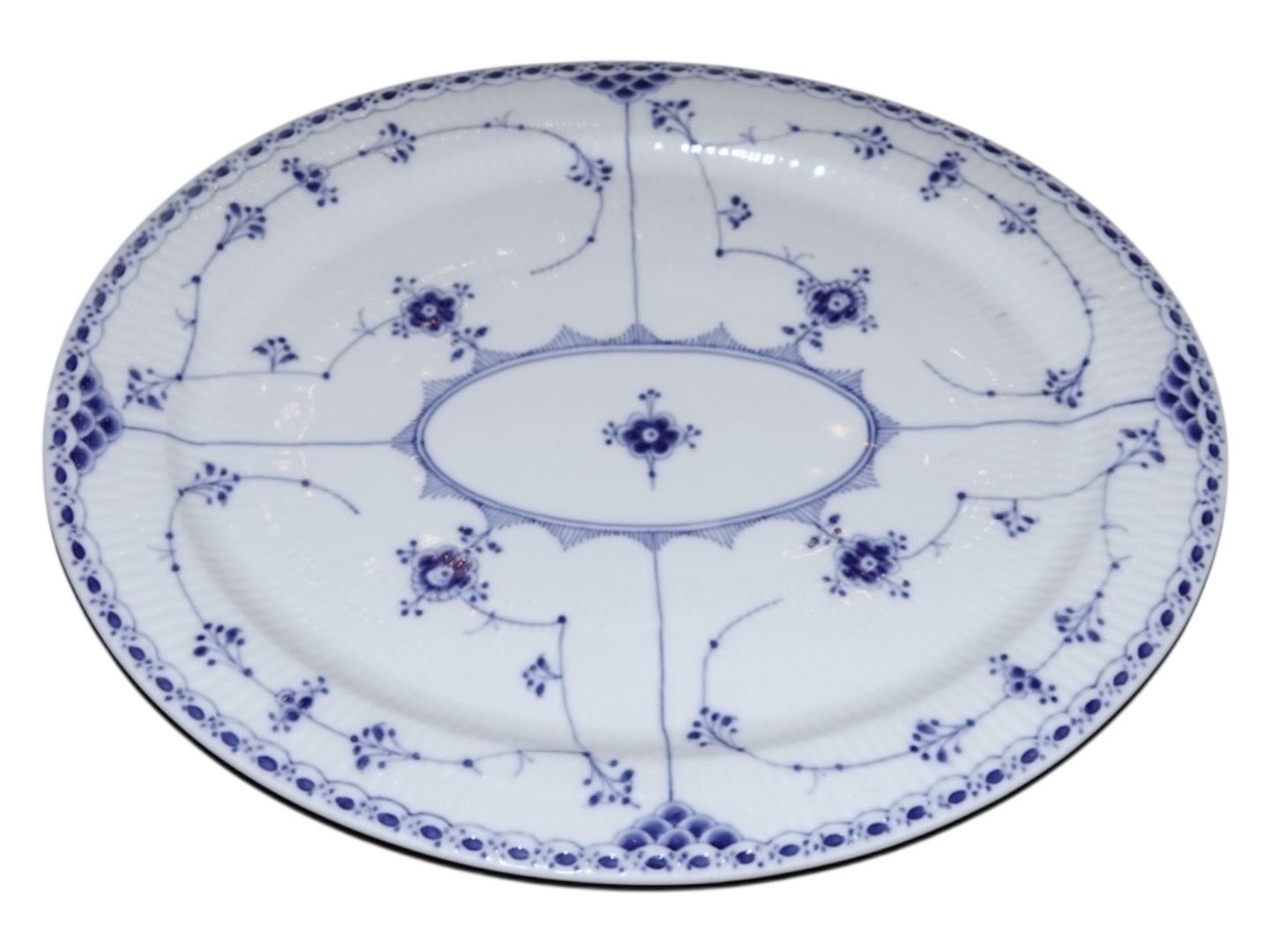 Royal Copenhagen Musselmalet Halvblonde, helfladt stegefad.