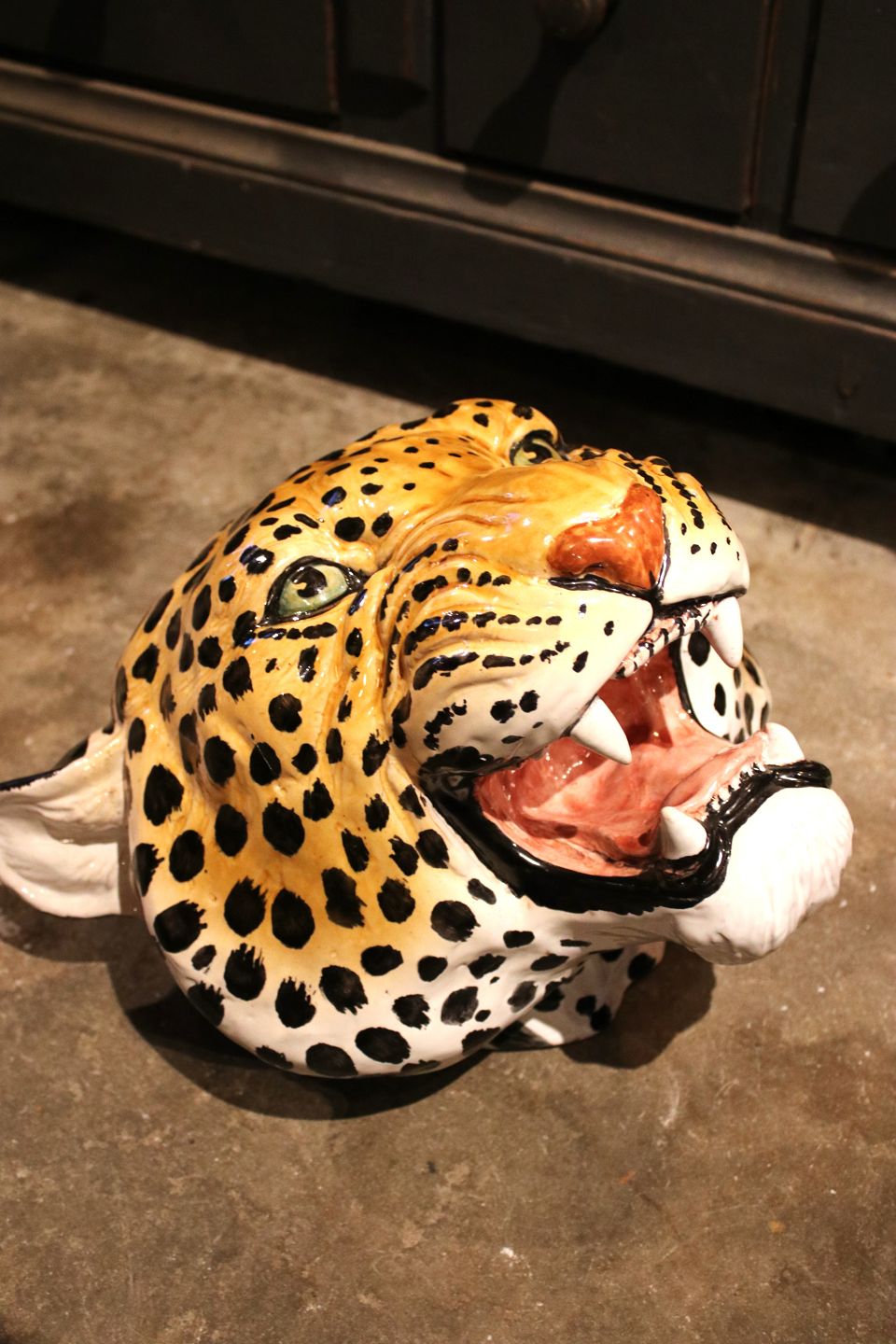 Italiensk vintage leopard hoved i glaseret terrakotta fra 60érne.