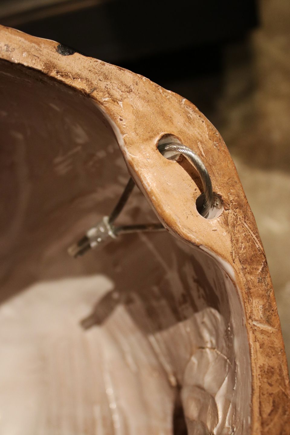 Leopard hovedet kan hænges på væg med også dekorativt liggende på bord. H: 32cm. B: 32cm. Dybde ud fra væg: 24cm.
