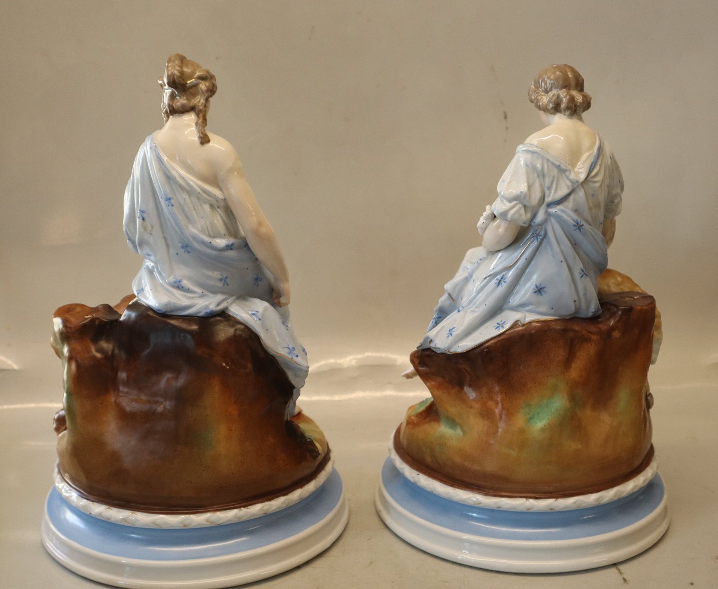 2 Antikke Europæiske figurer 29 x 18.5 cm Kvinde med hund og Kvinde med gedekid