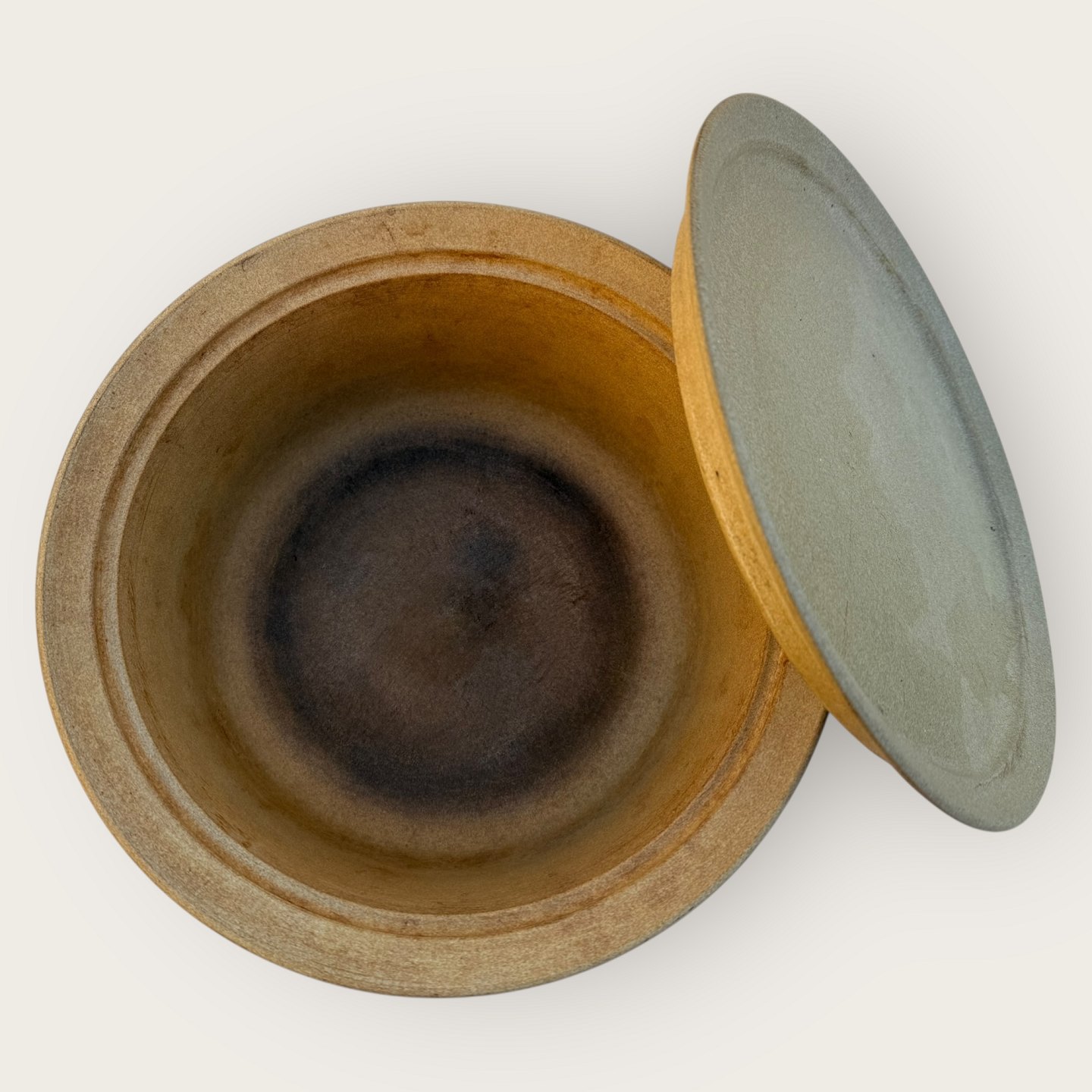 | Royal Copenhagen, Ildpot / Feuertopf, großer Topf mit Deckel, Nr. 22506 und 22514, 29 cm Durchmesser und 13,5 cm hoch, 1. Wahl, Design Grethe Meyer * Sehr kleiner Chip am Deckel (siehe Foto) und leichte Verfärbungen am Boden, ansonsten in gutem, gebrauchtem Zustand*