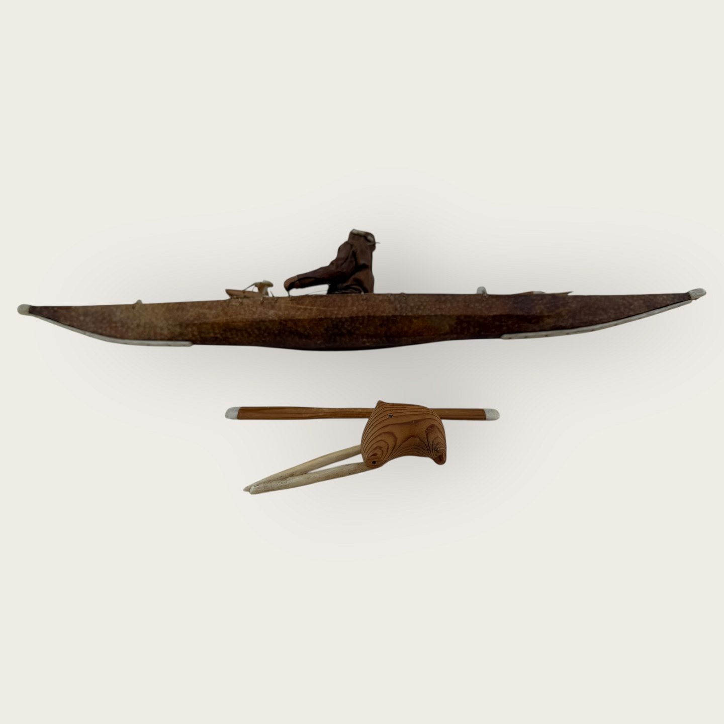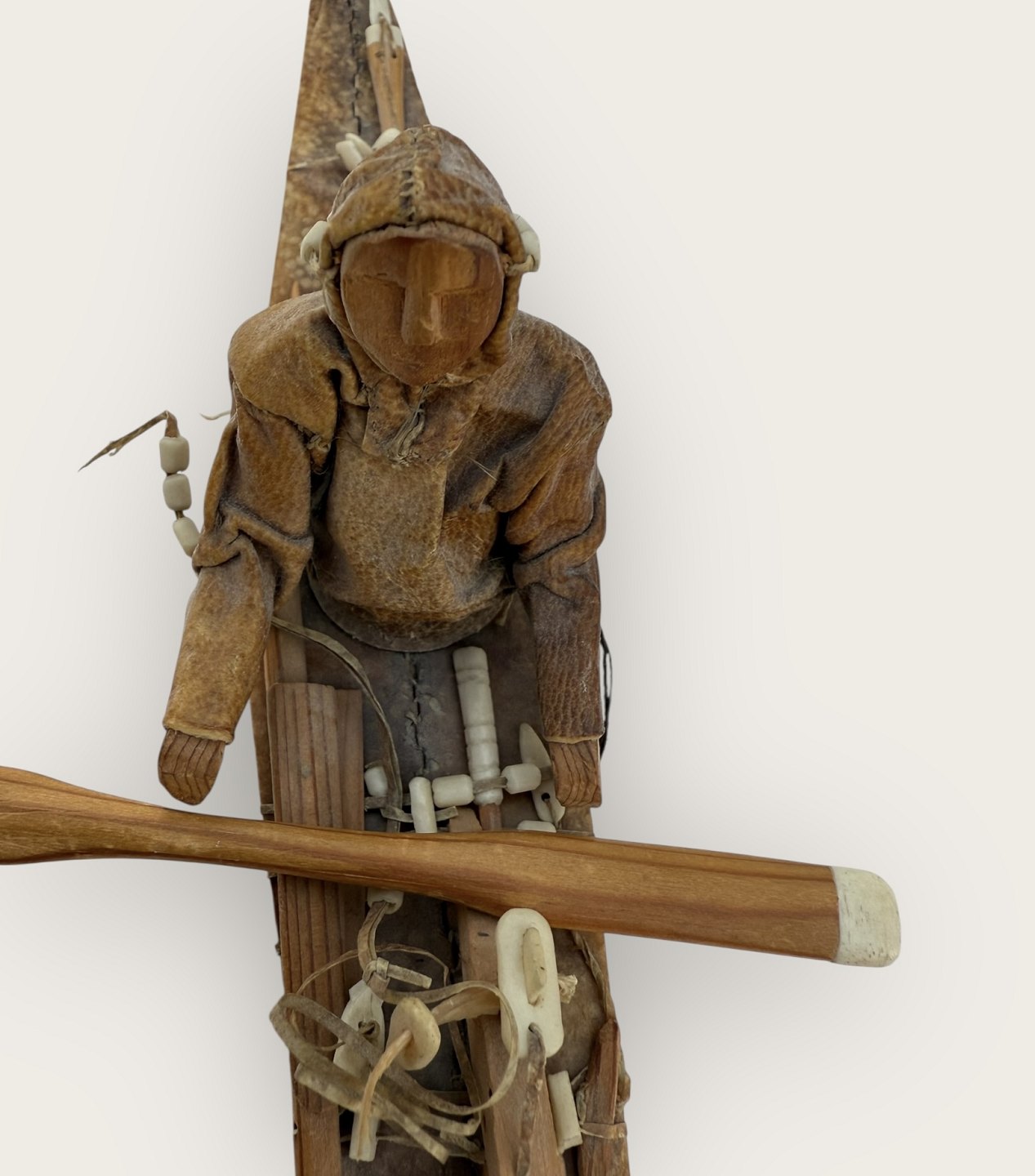 Grönland, großes Kajakmodell aus Holz, Knochen und Leder, 41 cm lang *sehr guter Zustand*