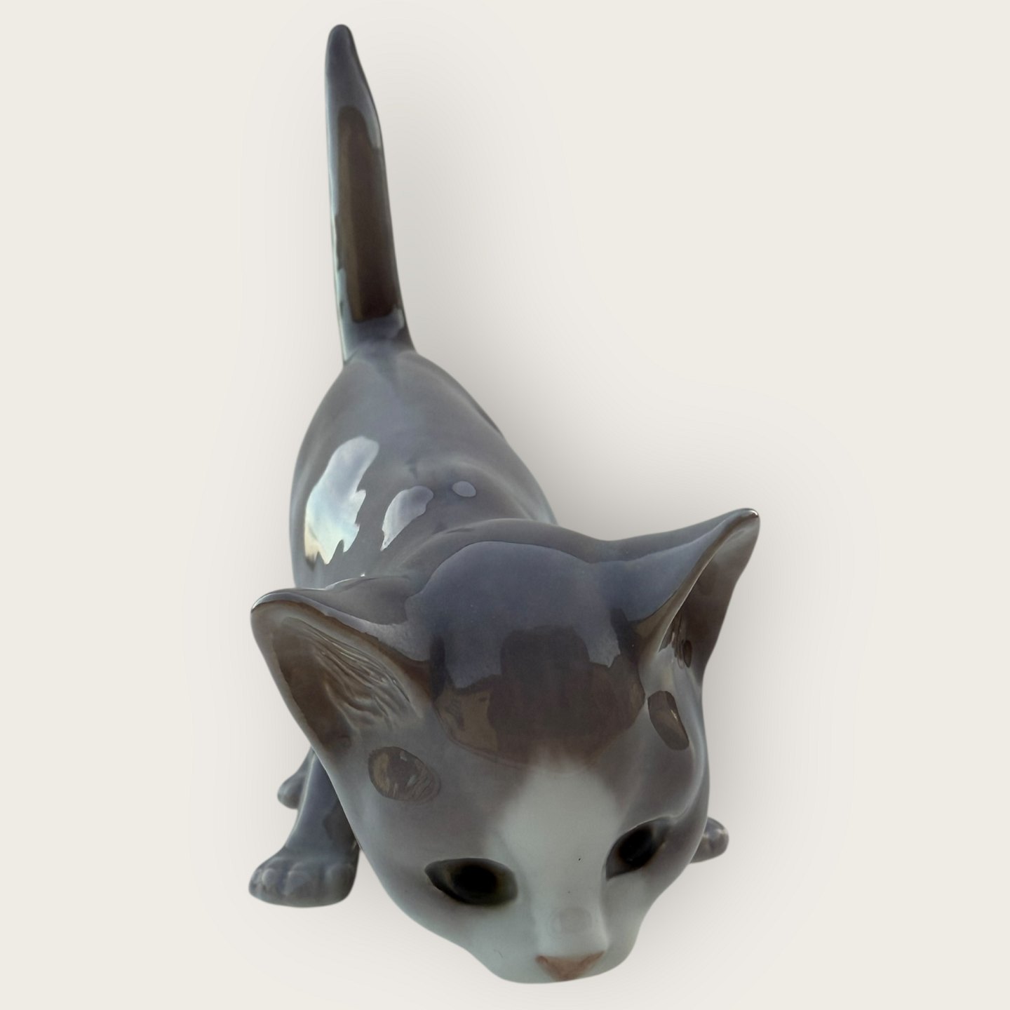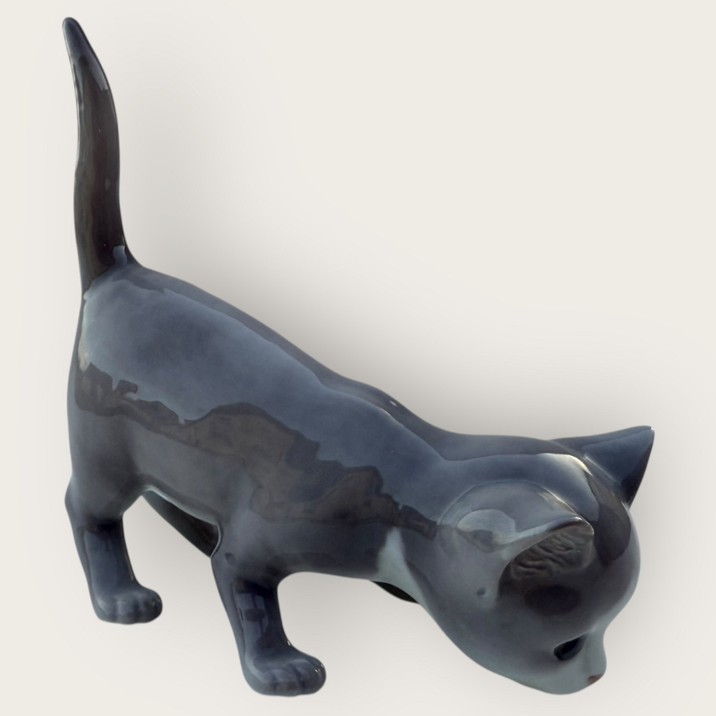 Bing & Grondahl, Graue Katze mit erhobenem Schwanz, Nr. 2517, 1. Wahl, Maße ca. 12 x 13 x 6 cm *Guter Zustand*