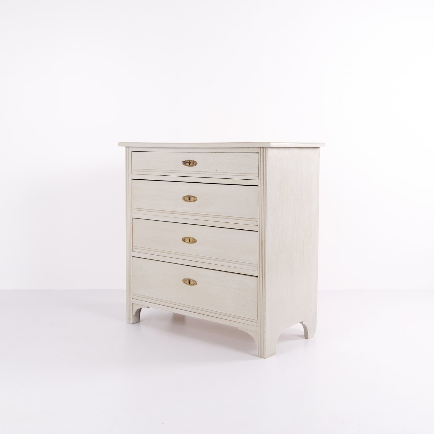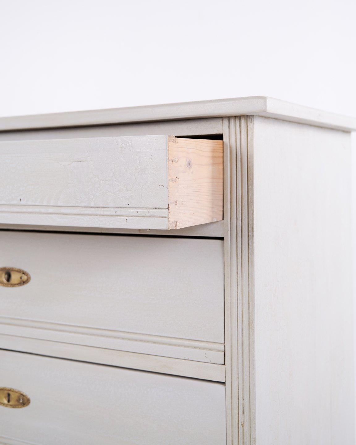 Antike Kommode mit 4 Schubladen – Grau Gestrichen – Um 1890er-Jahre