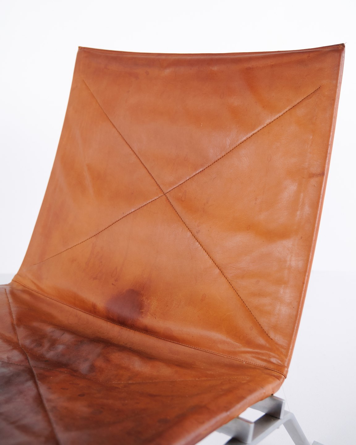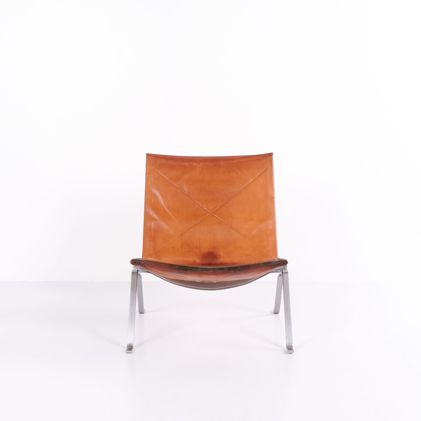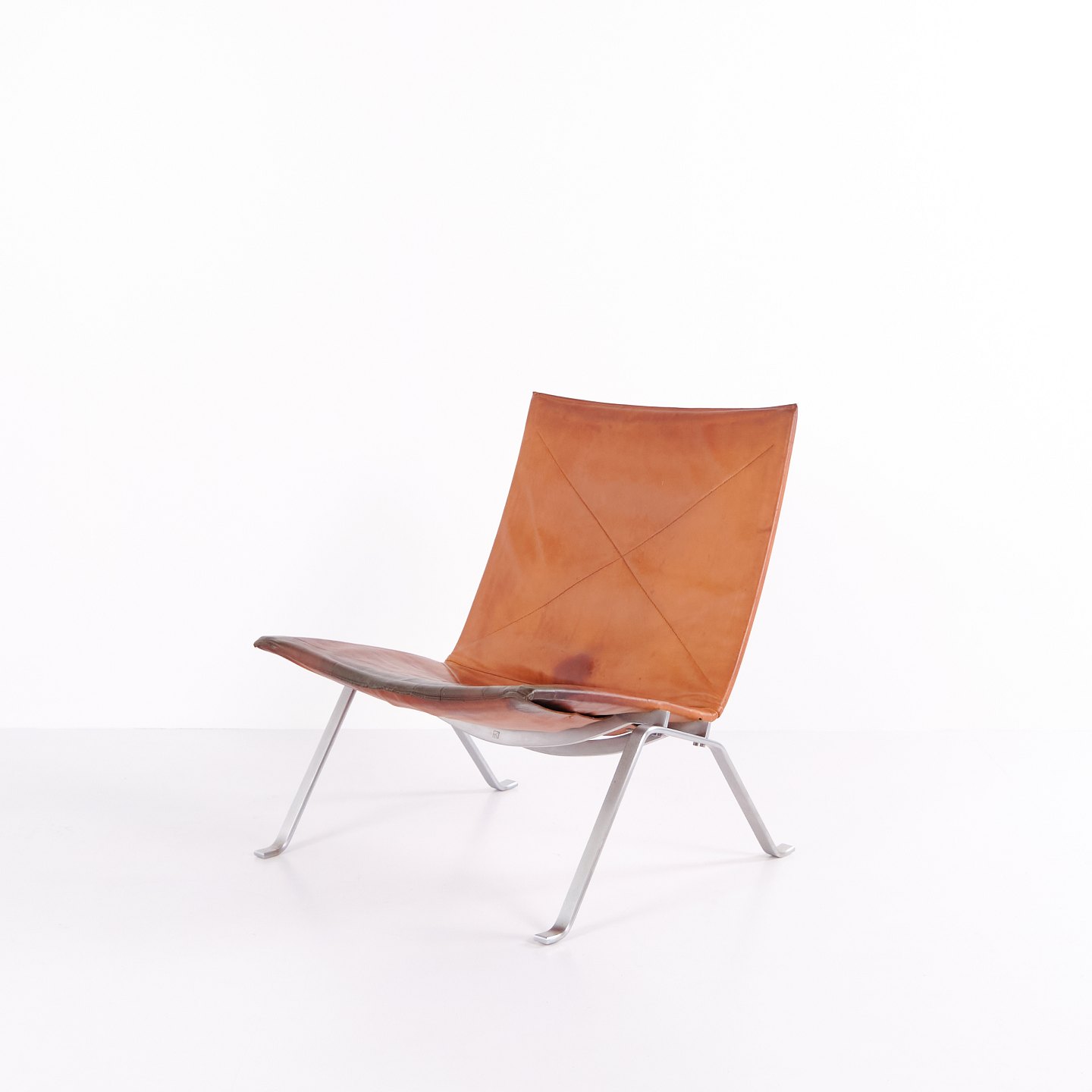 PK22 Sessel von Poul Kjærholm für E. Kold Christensen. Originalpolsterung aus patiniertem Cognac-Leder. Dänische Designikone der 1950er-Jahre.