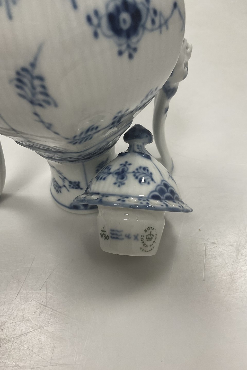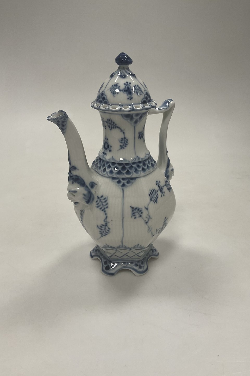 Royal Copenhagen Musselmalet Helblonde Lille sekskantet kaffekande No 1030. 1. sortering. Måler 21 cm ( 8 17/64 in. ).