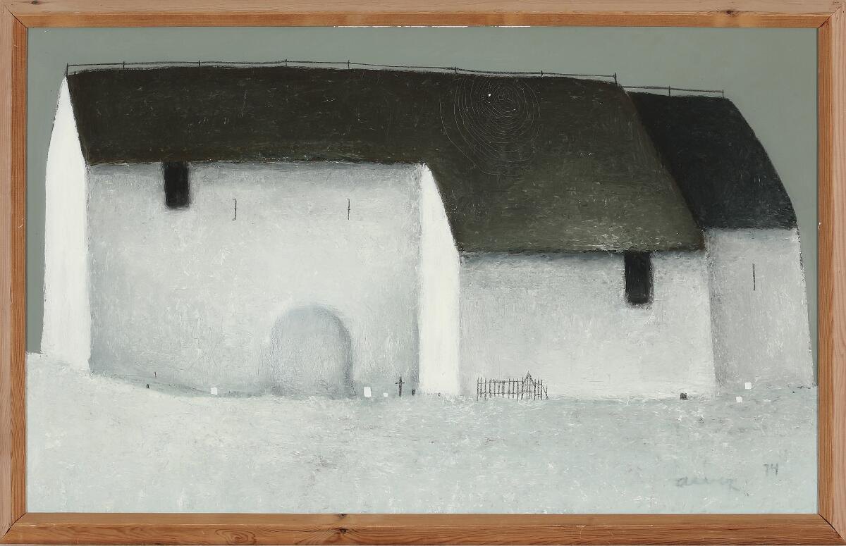 "Vinter ved kirke" Olie maleri i original natur ramme. Maleriet er i perfekt stand.