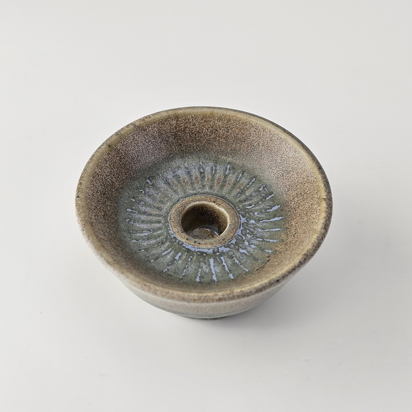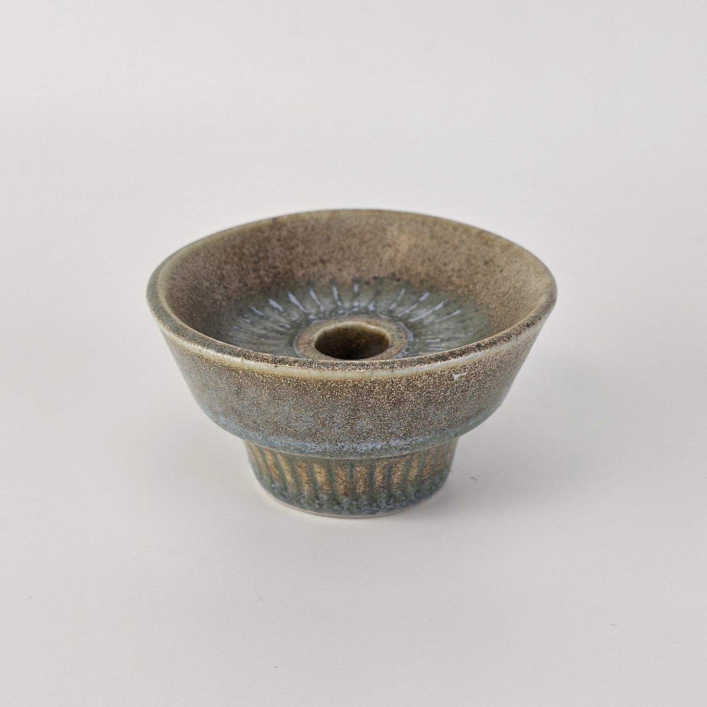Text zugänglich auf Dänische: Lysestage af stentøj og dekoreret med en grønlig nuance glasering.