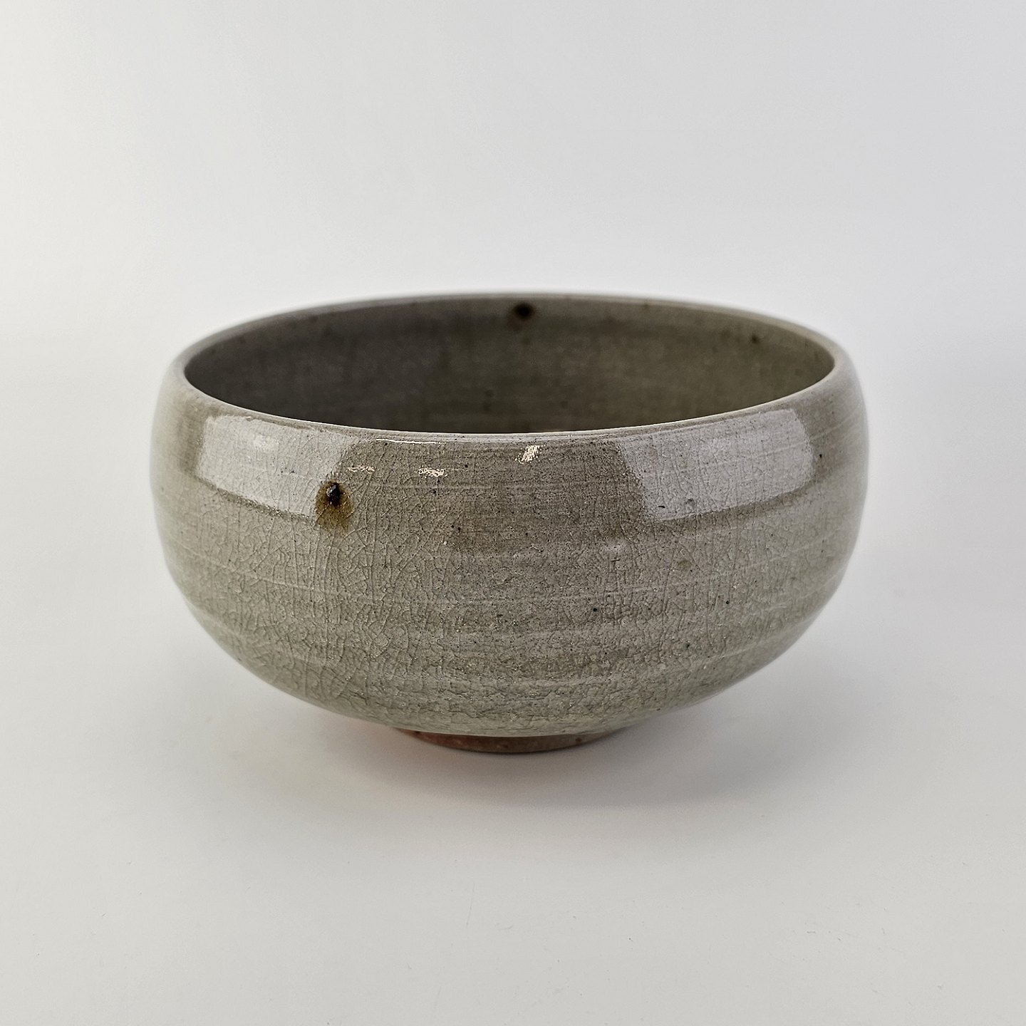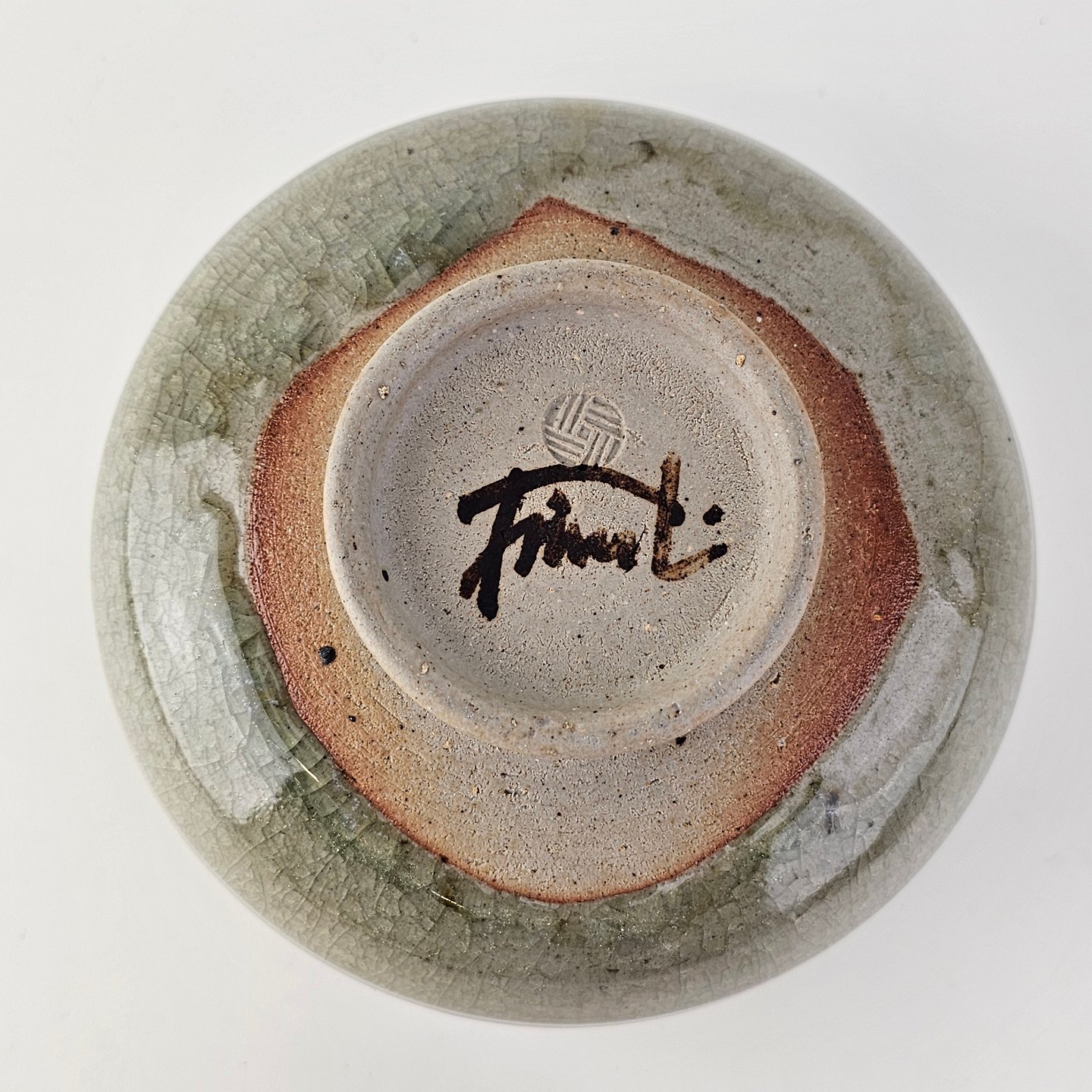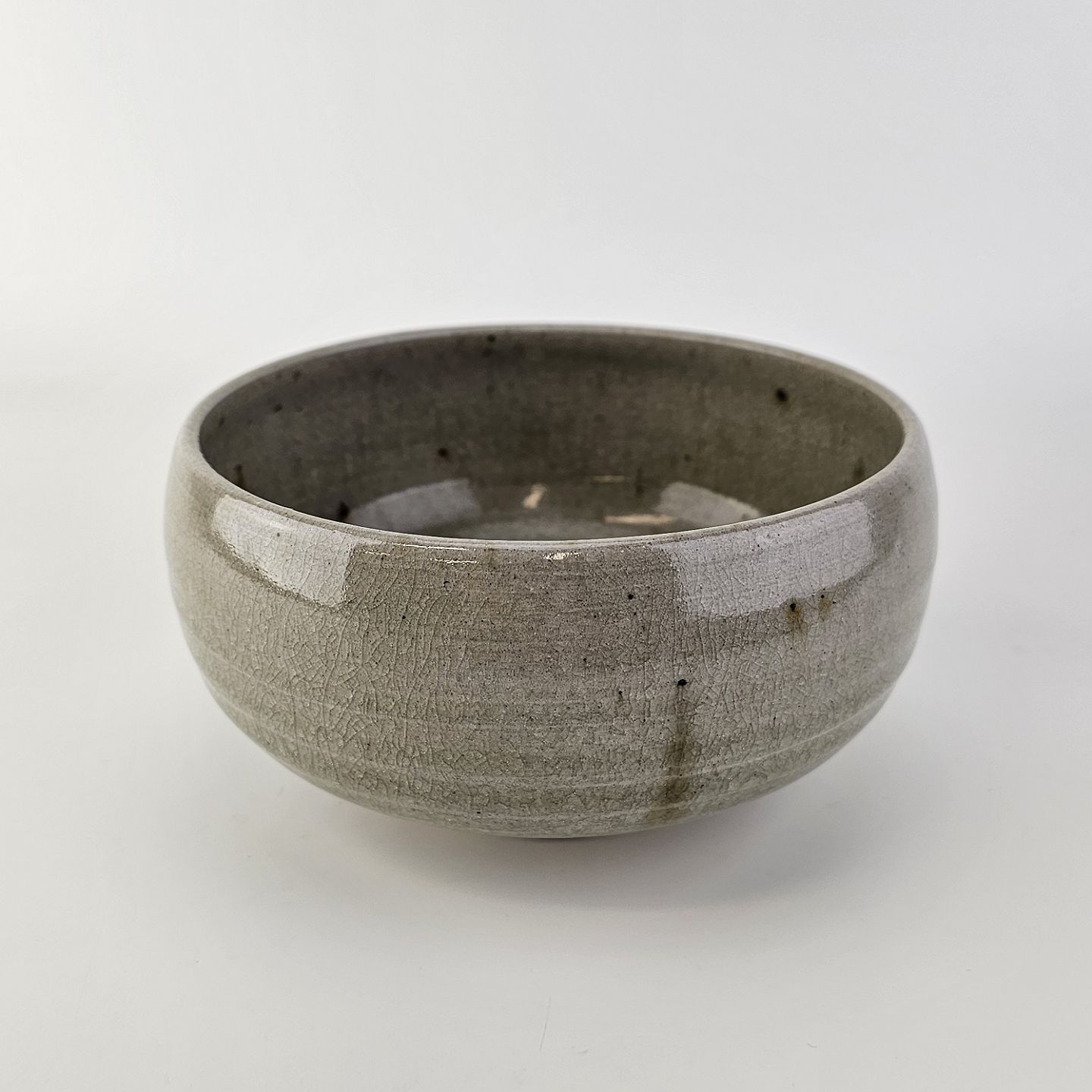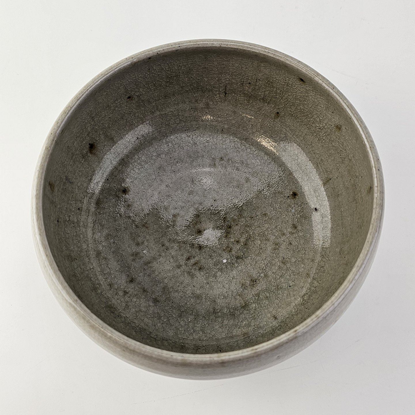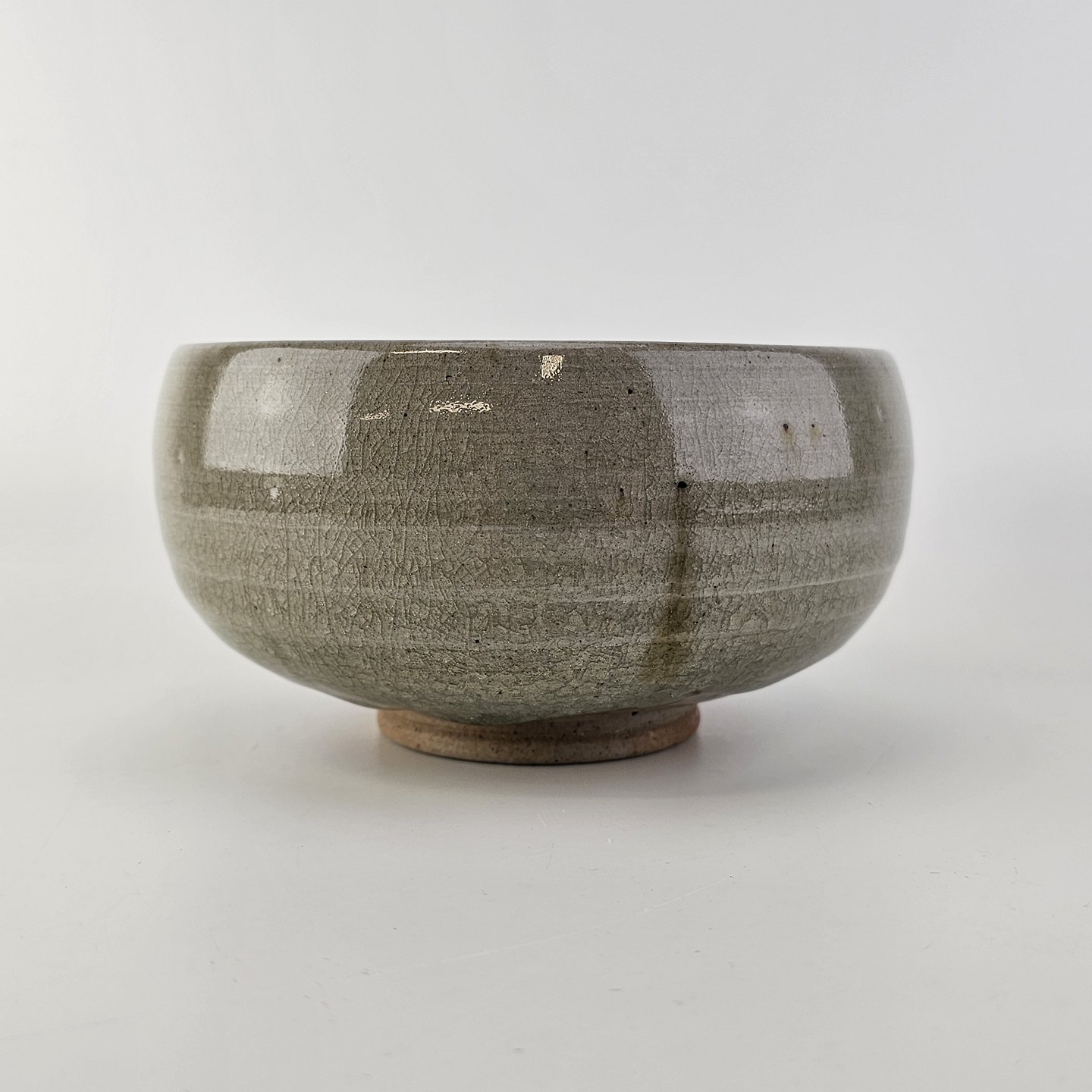Grønlig glaseret skål i keramik med krakelering.
