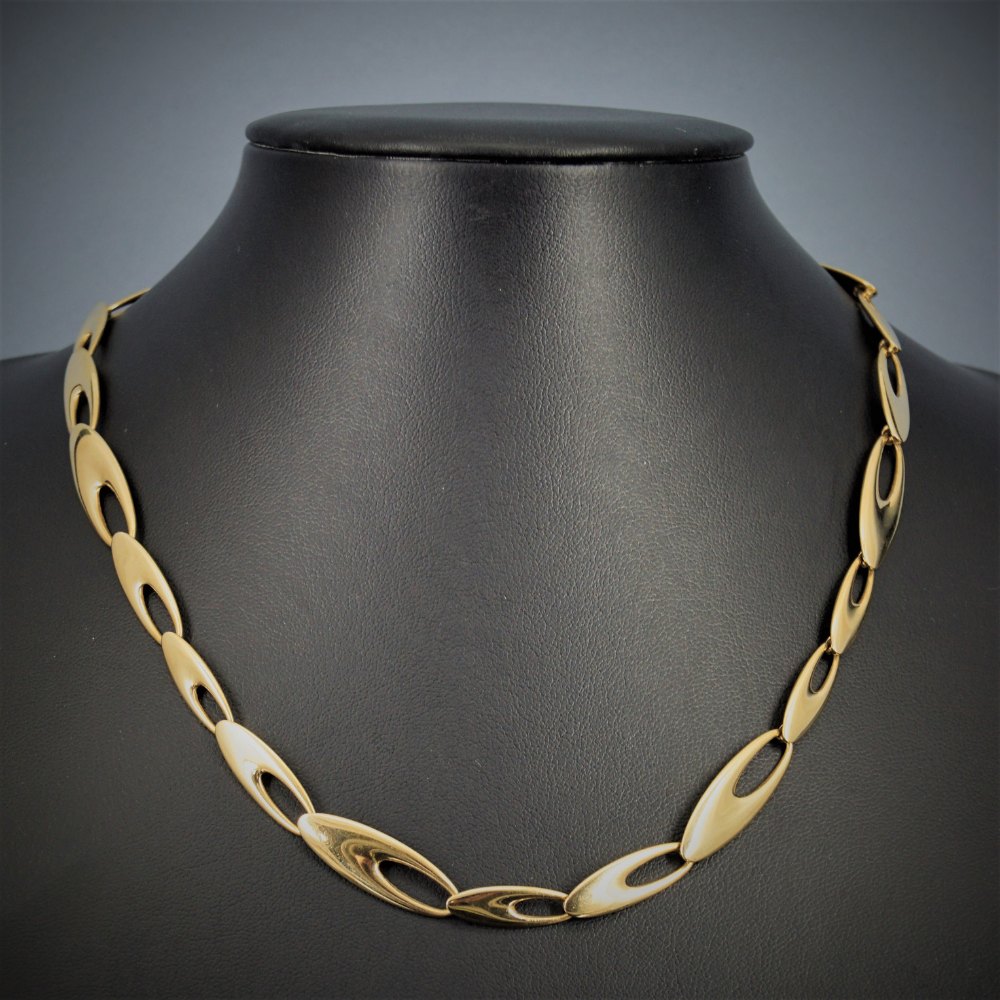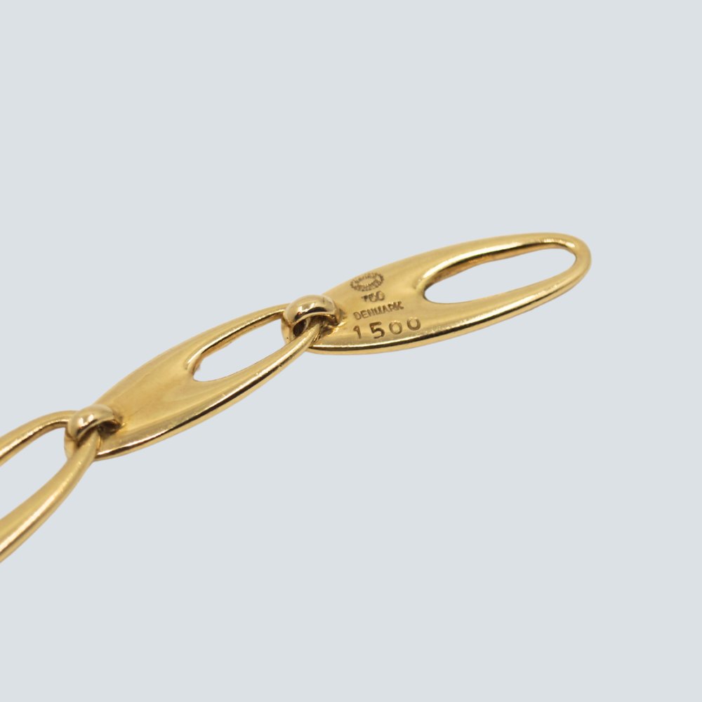 Text zugänglich auf Dänische: Regitze Overgaard for Georg Jensen; "Zephyr" halskæde af 18 kt. guld, dessin nr. 1500. L. 45 cm.