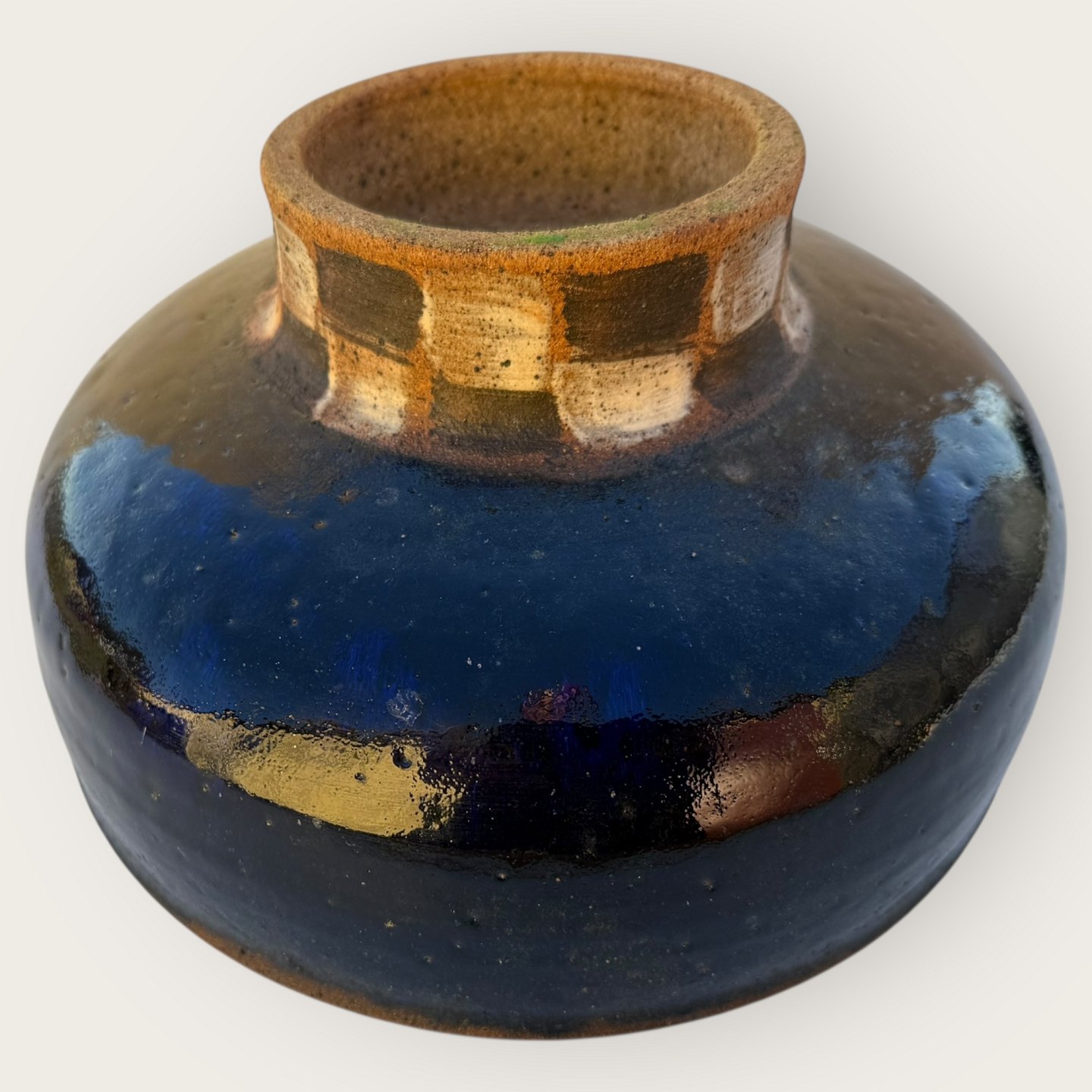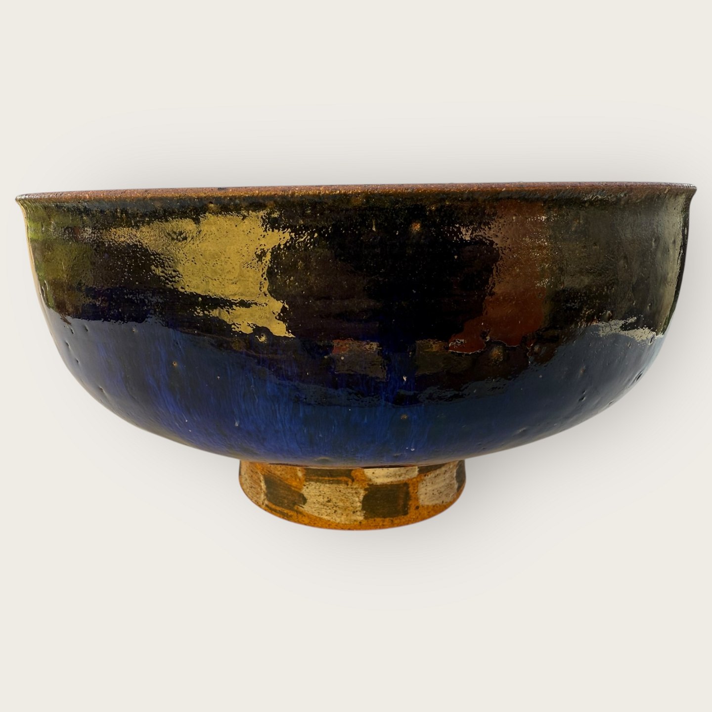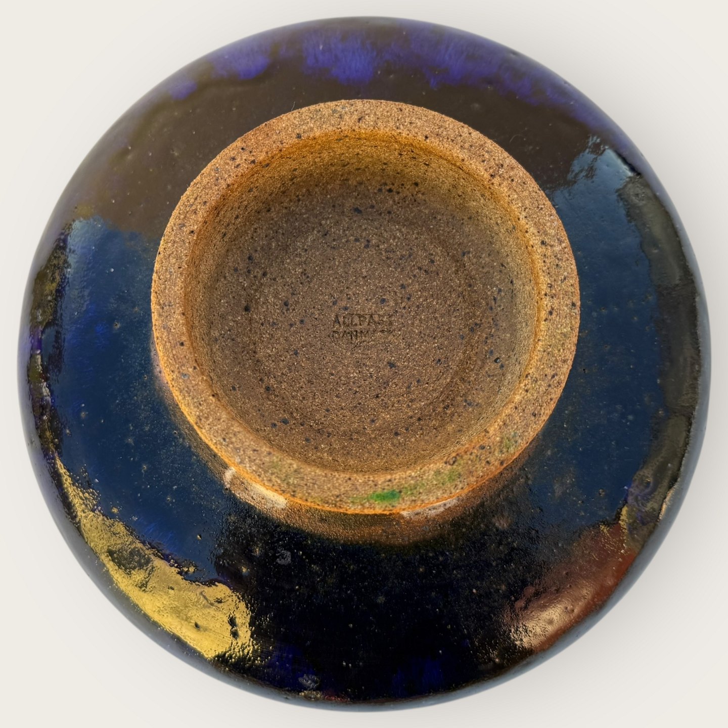 Allpass Keramik, große Schale auf Fuß, dunkelblaue Farben, 26 cm Durchmesser, 13 cm hoch, Design Helle Allpass *Produktionsbedingte Unregelmäßigkeiten (siehe Foto)*
