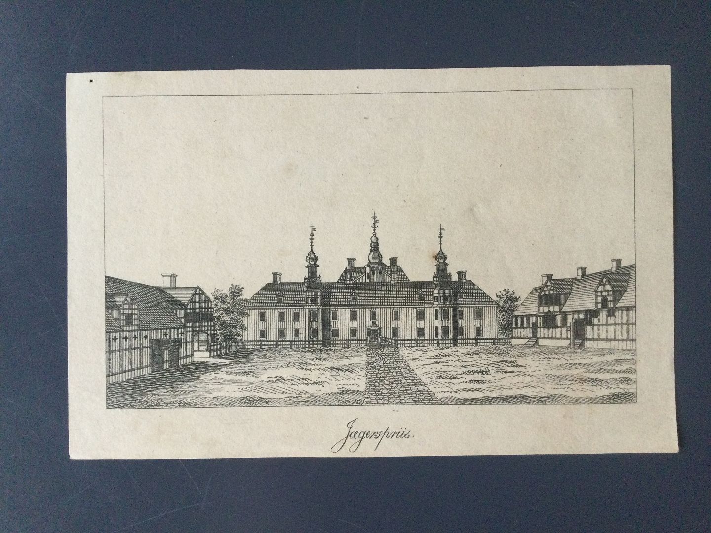 Litografi - Jægerspris Slot ved Frederikssund.