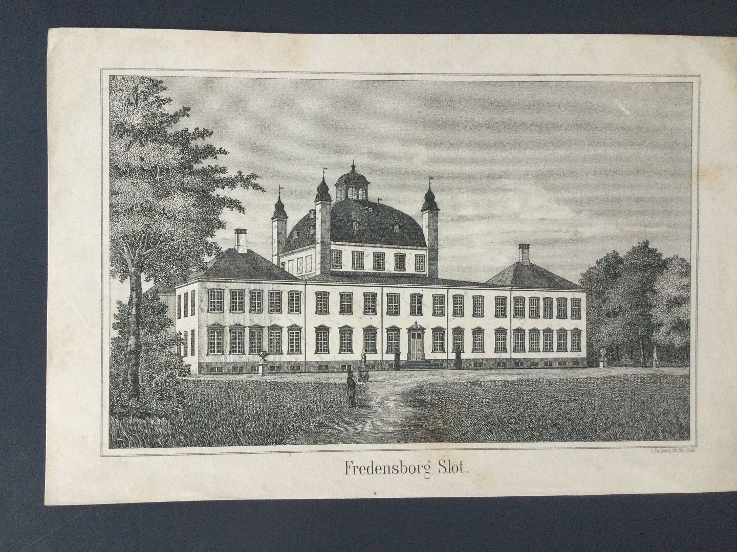Text zugänglich auf Dänische: Litografi af Christian Ferslew - Fredensborg Slot set fra parken