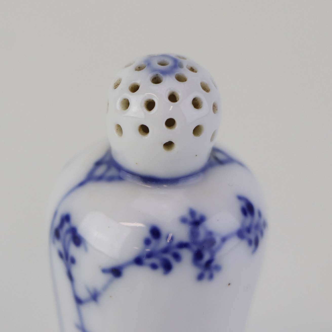Mindre strø til peber i kongelig porcelæn fra stellet Musselmalet riflet. Nr. 1/439