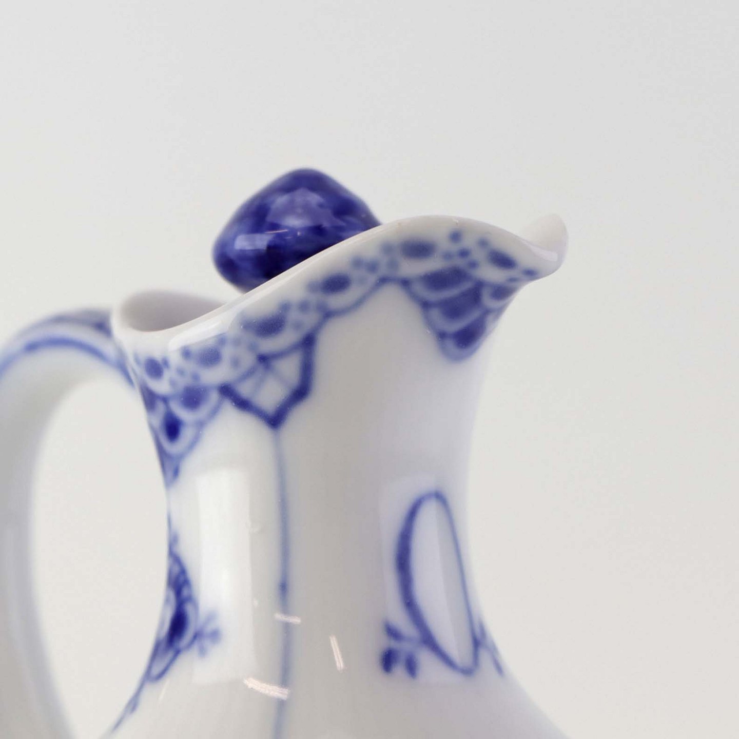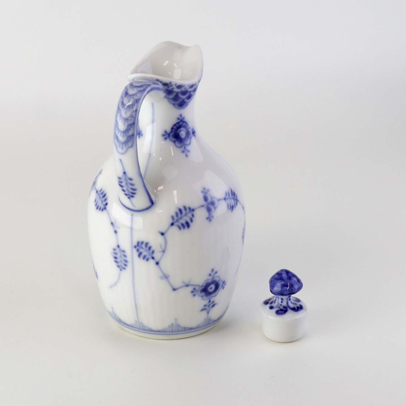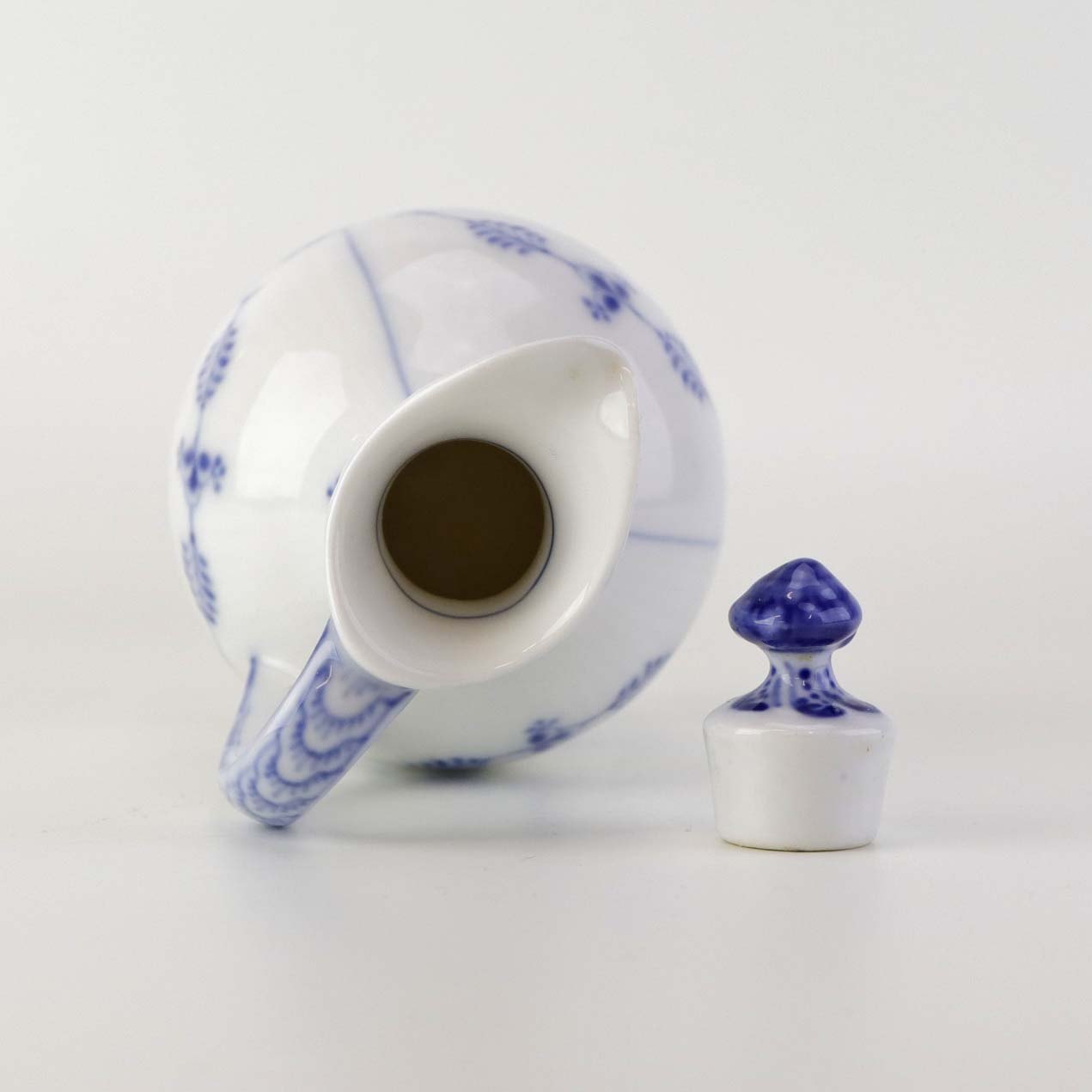 Kande med prop til olie i kongelig porcelæn fra stellet Musselmalet Halvblonde. Nr. 1/1179