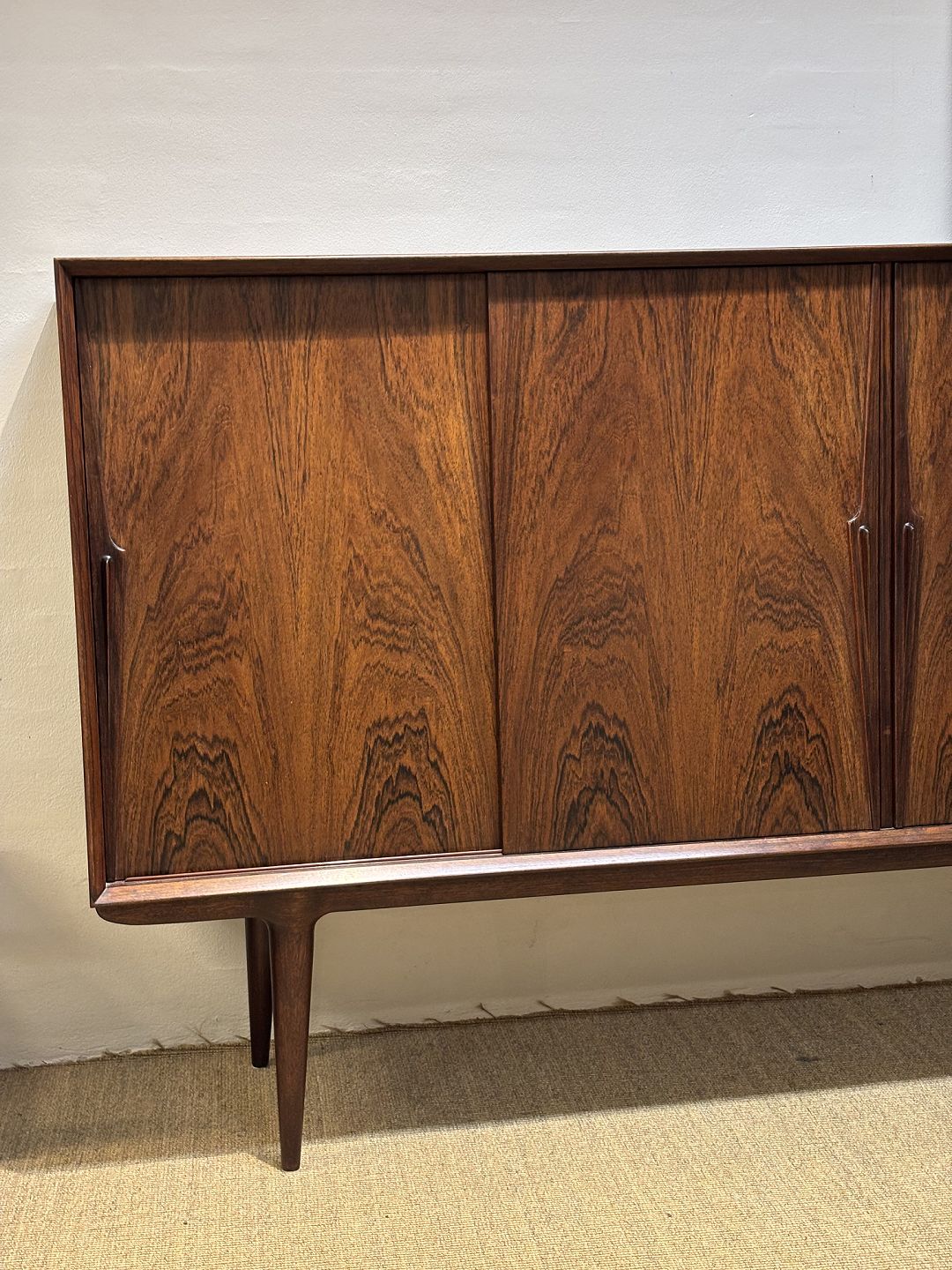 Omann jur. a/s. Skænk model 19 i palisander. Fin stand uden solskader. Mål h 110 d 45 b 200 Nordic design.