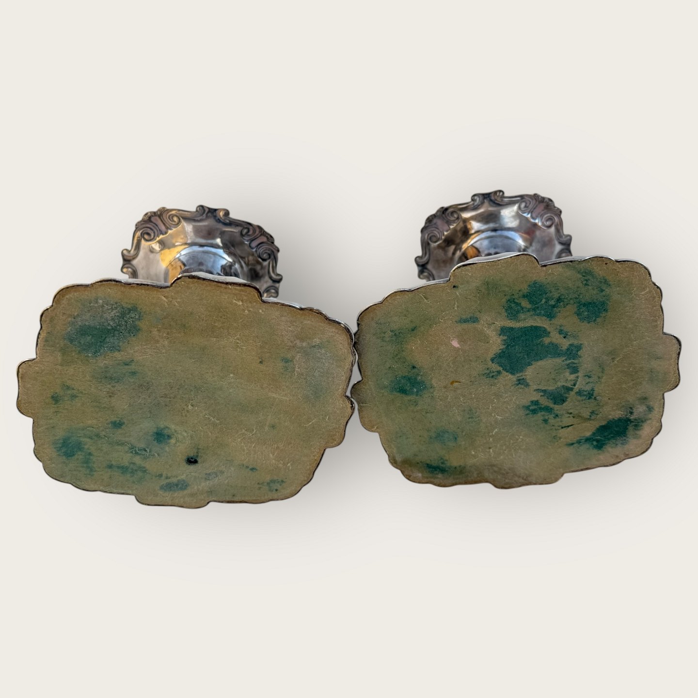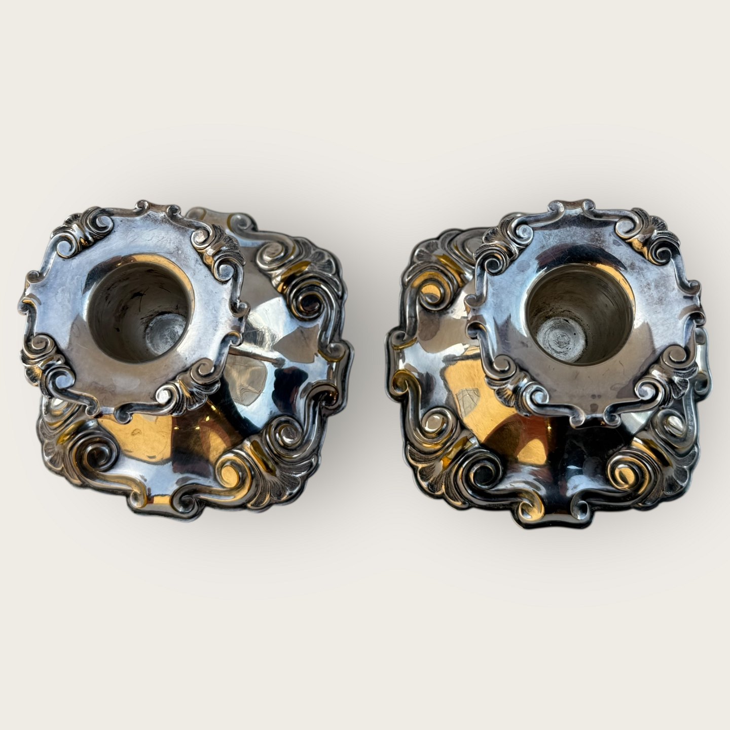 Cohr Silberwarenmanufaktur, ein Paar Kerzenleuchter aus versilbertem Metall mit ausgefülltem Boden, Höhe 6,5 cm. * Leichte Gebrauchsspuren an der Versilberung, ansonsten in gutem, gebrauchtem Zustand. *