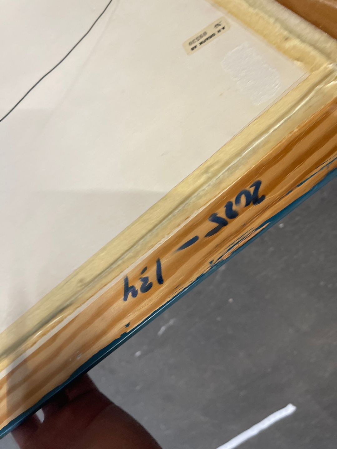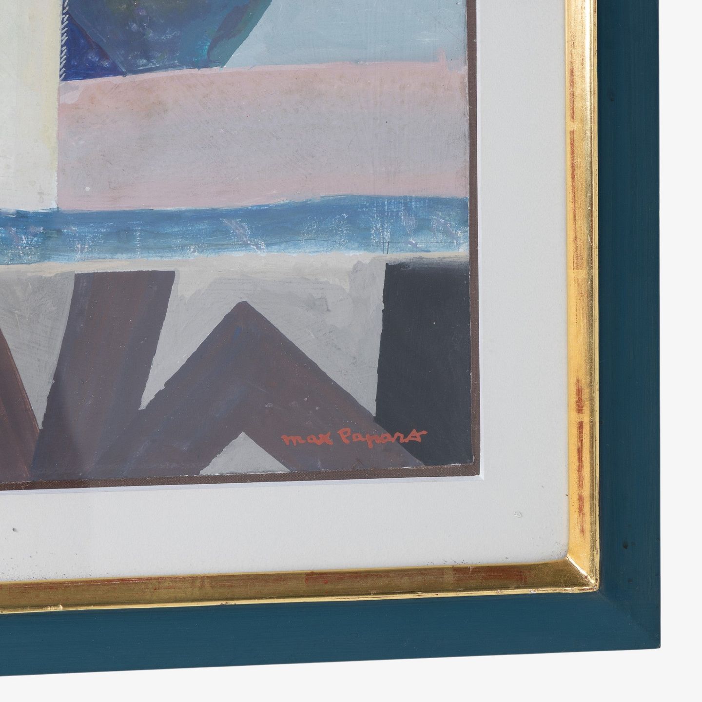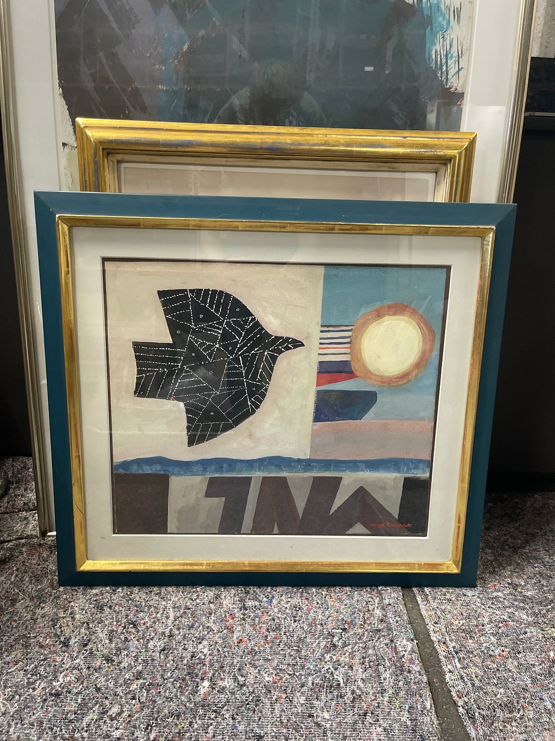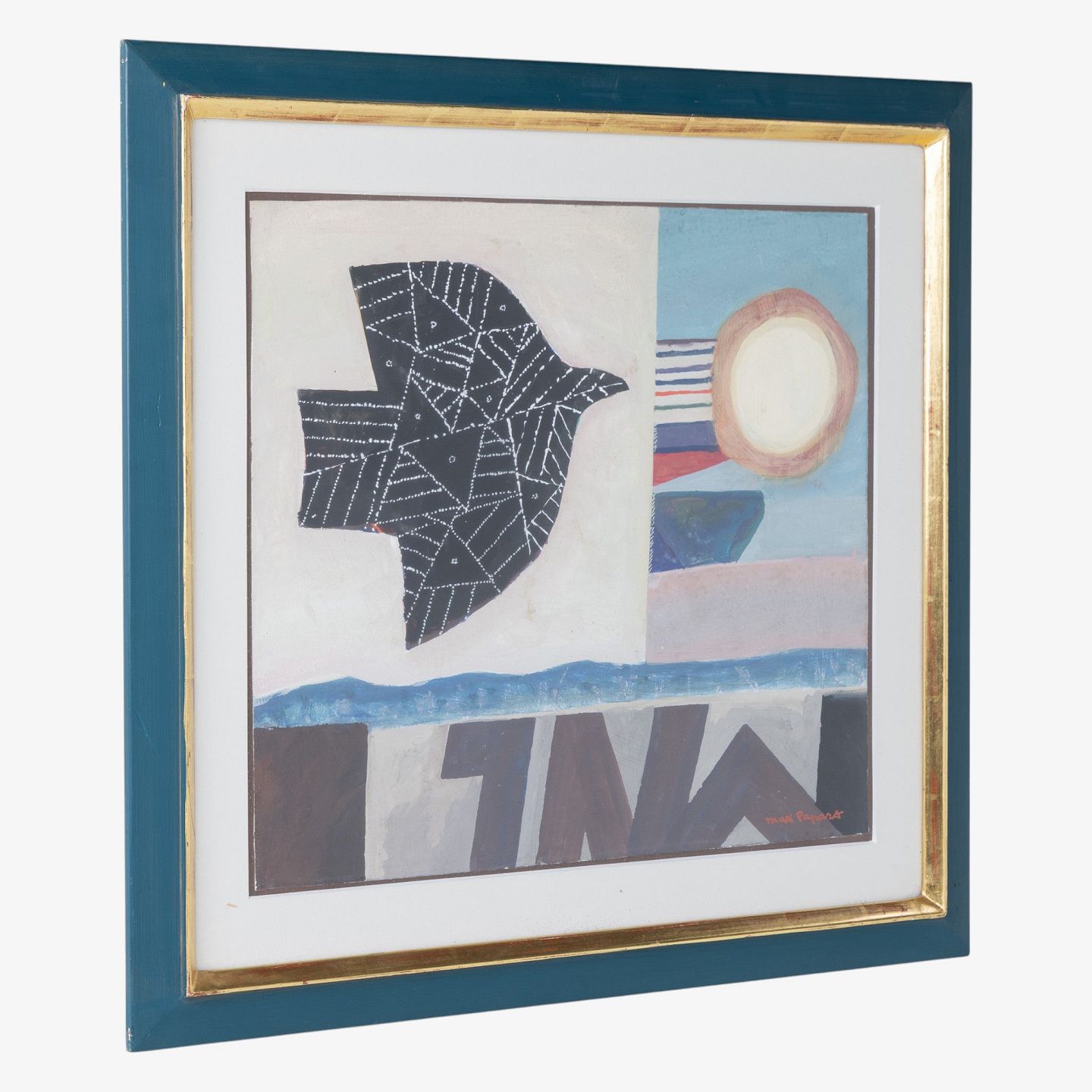 Gouache på papir i blå ramme. Signeret.