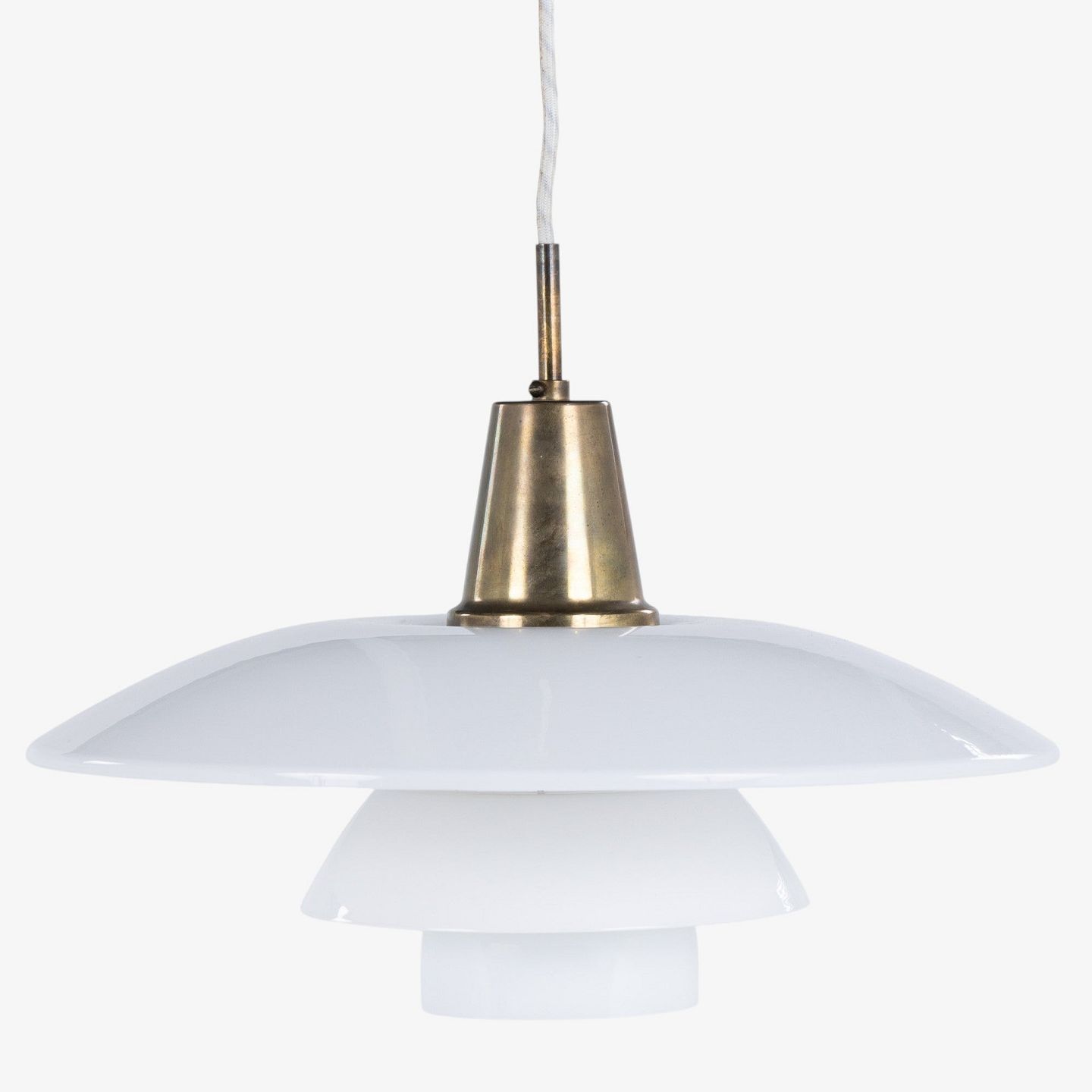 PH 4/3 - Pendel med hvide glasskærme og hejs i messing.