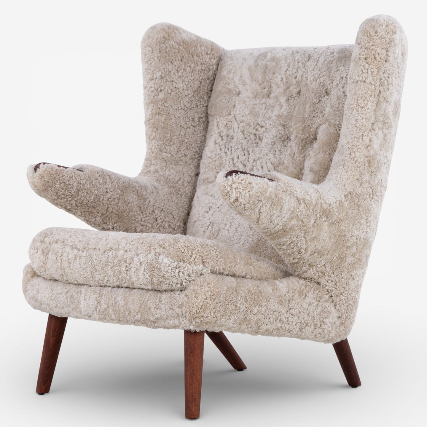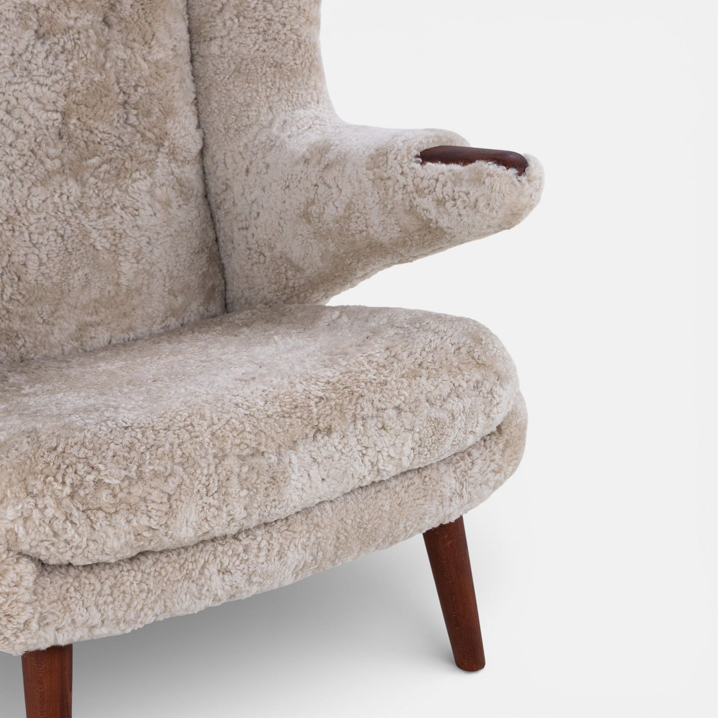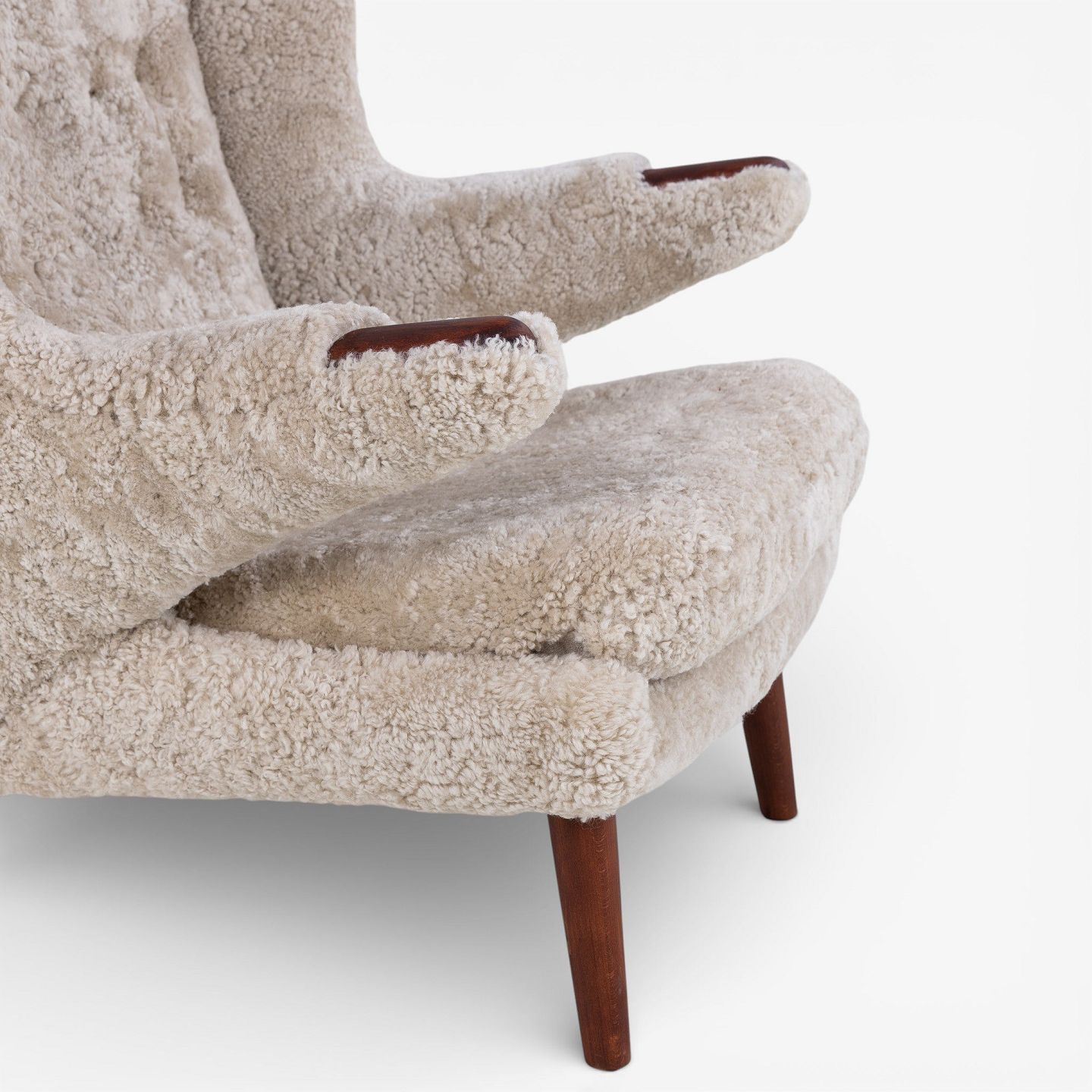 AP 19 - Nybetrukket Bamsestol i lammeskind (farve: Moonlight) m. skammel.