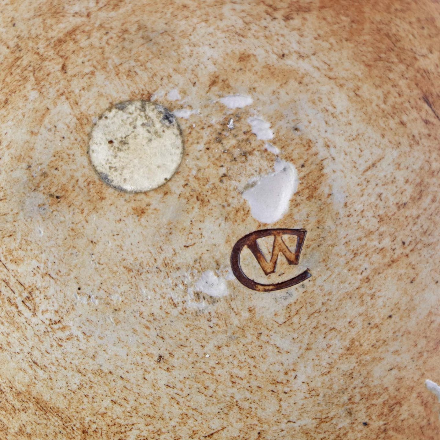 Lav rund vase i keramik. Delvist glaseret med flerfarvet mat og glansfuld glasur.