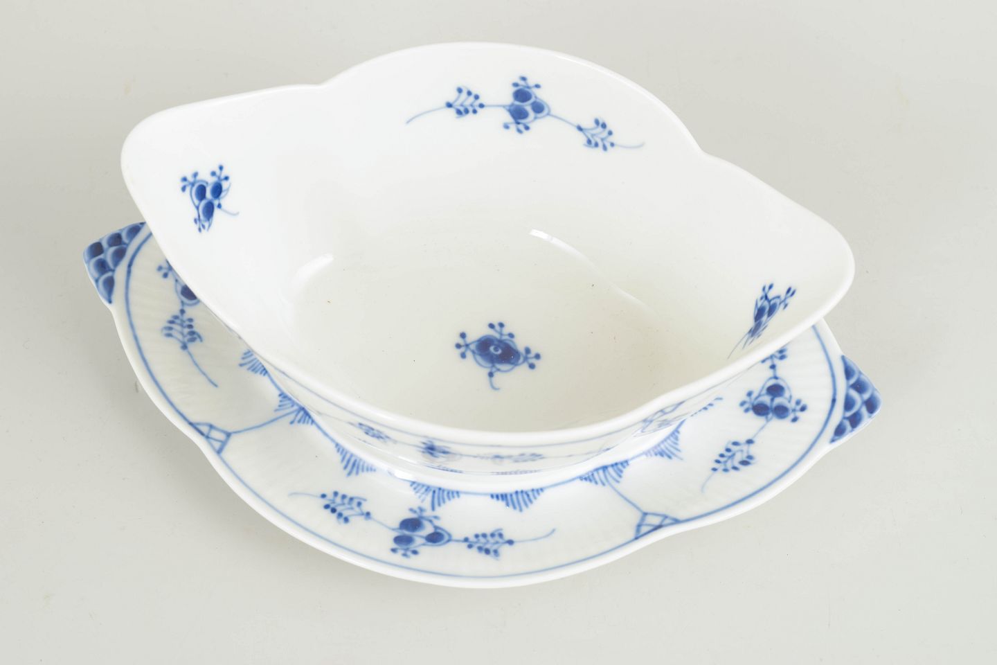 Musselmalet riflet saucebåd med underfad, 1967.