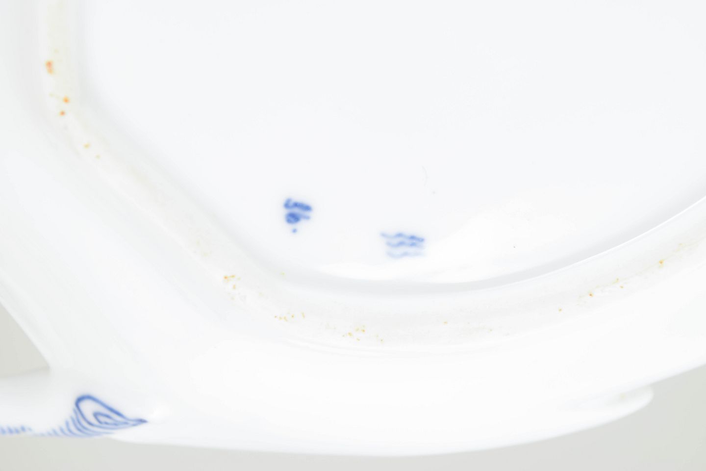 Text zugänglich auf Dänische: Royal Copenhagen musselmalet riflet bladformet fad, midten af 1800-tallet.