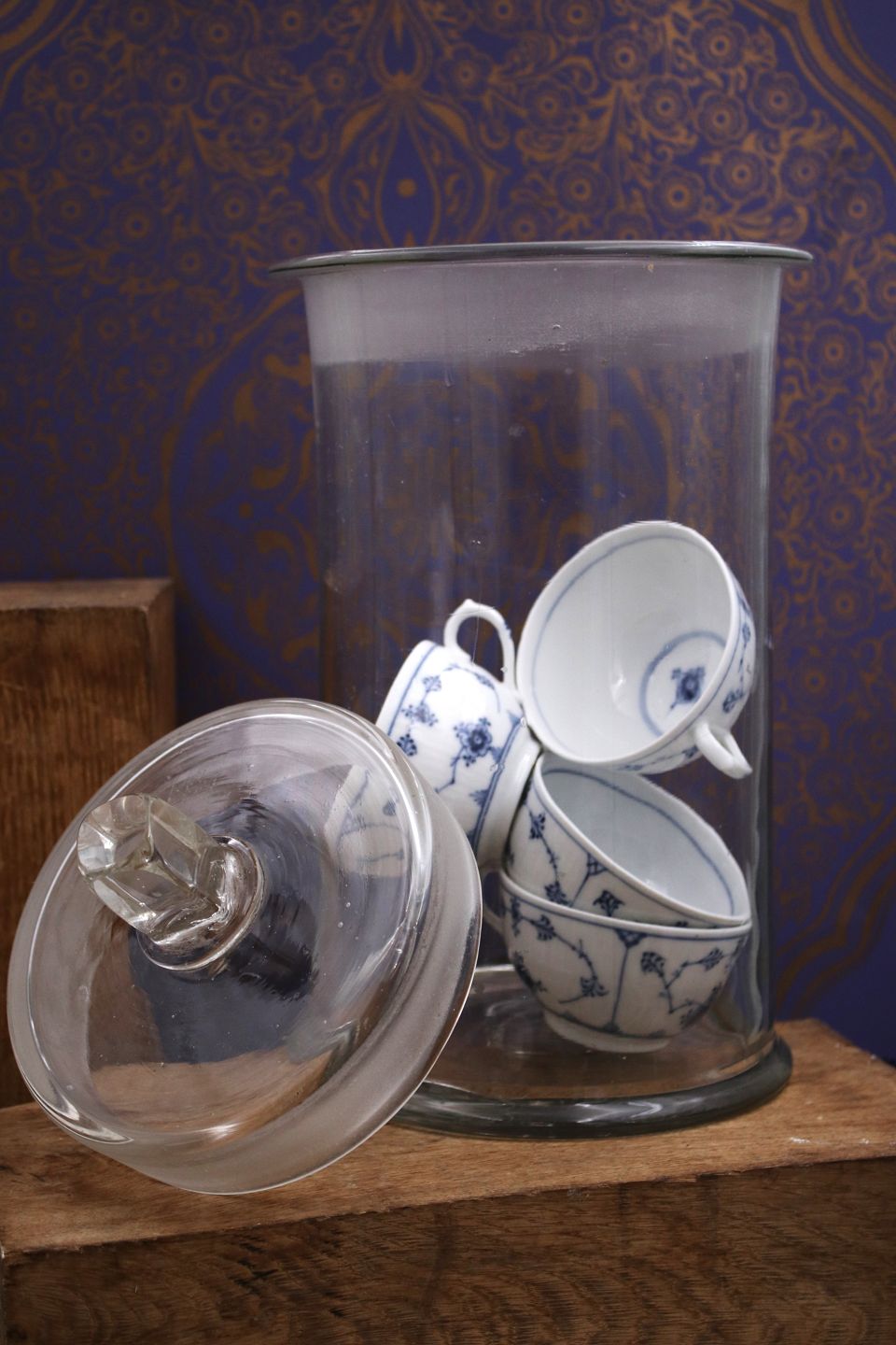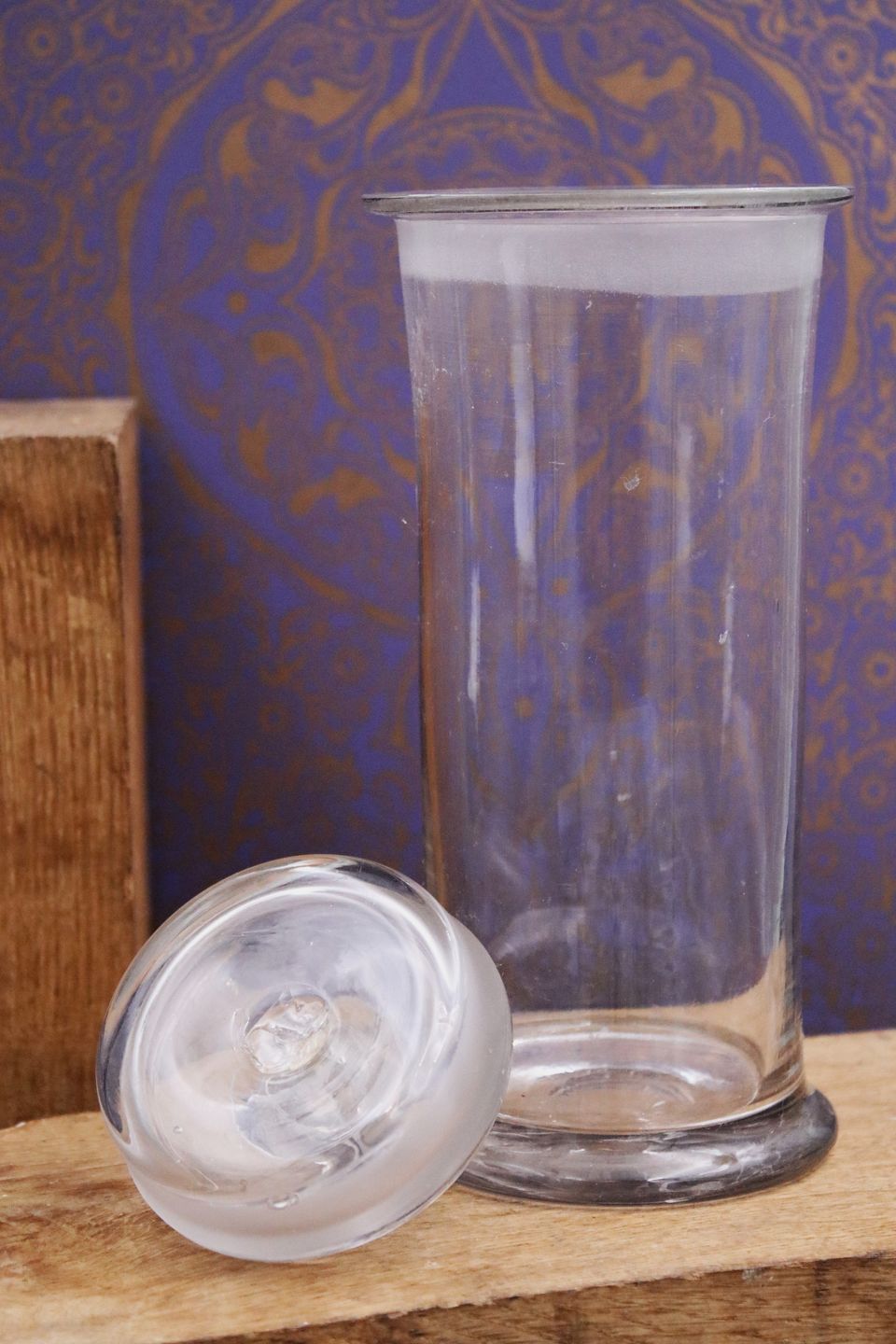 Antikke franske bolsjeglas “pot á bonbon” i mundblæst glas
