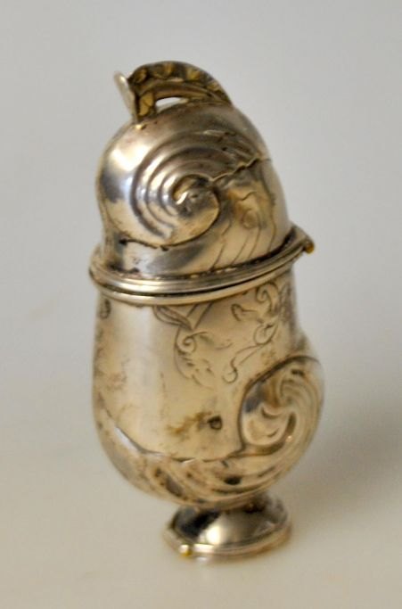 Andreas (Jesper) Kanneworff (1772–1854), Ringkøbing, Dänemark: Duft ei. Rokoko. Innen vergoldet. Im Einbalsamierungsraum gestempelt. Höhe: 8 cm.
