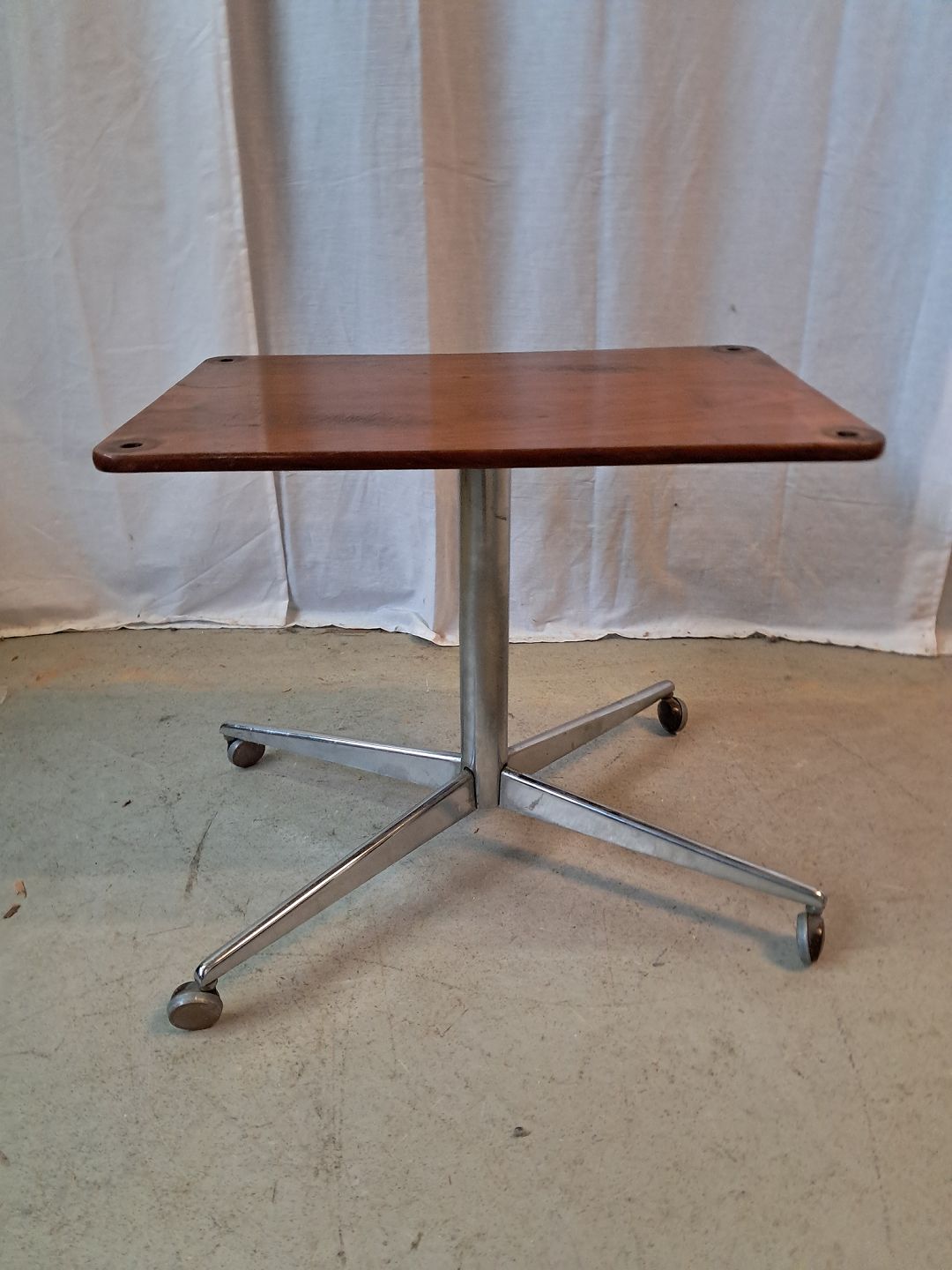 Bord i metal med massivt træplade, fra 1960erne.