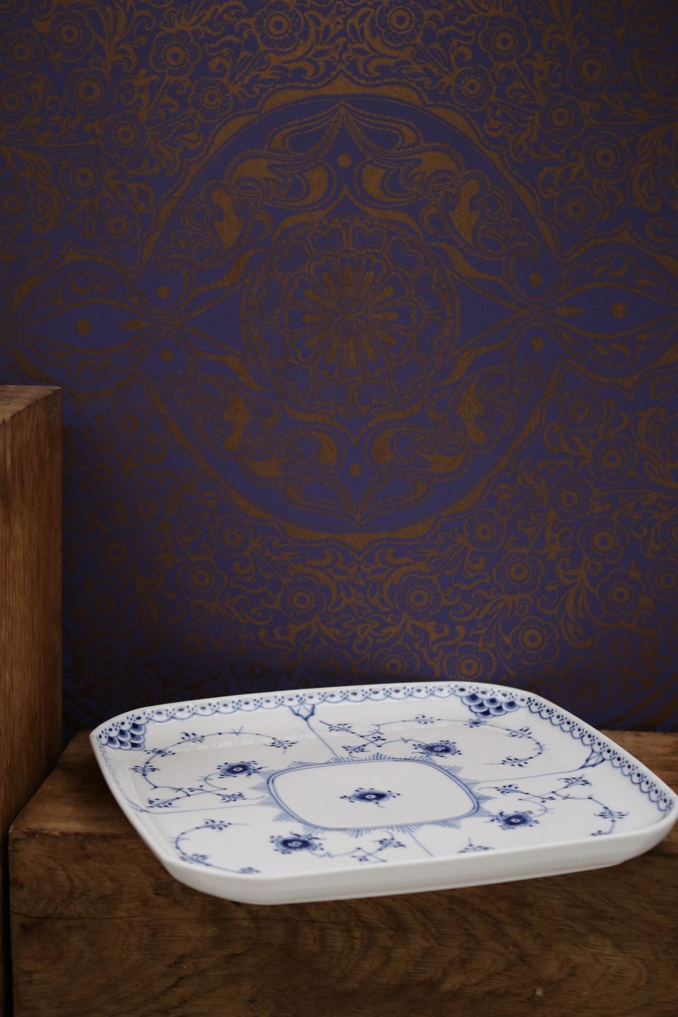Royal Copenhagen Musselmalet Halvblonde firkantet tallerken.