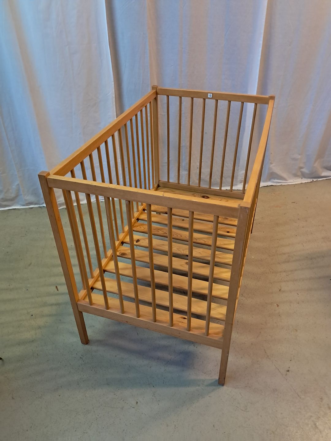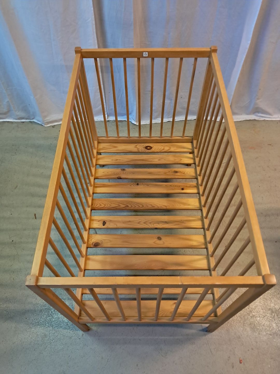 Barneseng i massivt bøgetræ, fra 1970erne.