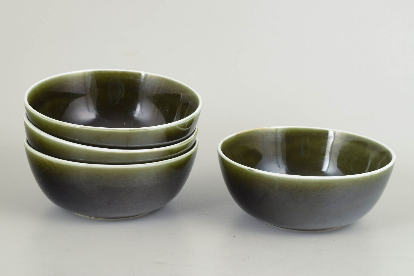 Sæt bestående af fire skåle i stentøj fra Vardag-serien med karakteristisk grøn glasur. Enkle og funktionelle former designet til hverdagsbrug, med et roligt og tidløst skandinavisk modernistisk udtryk.