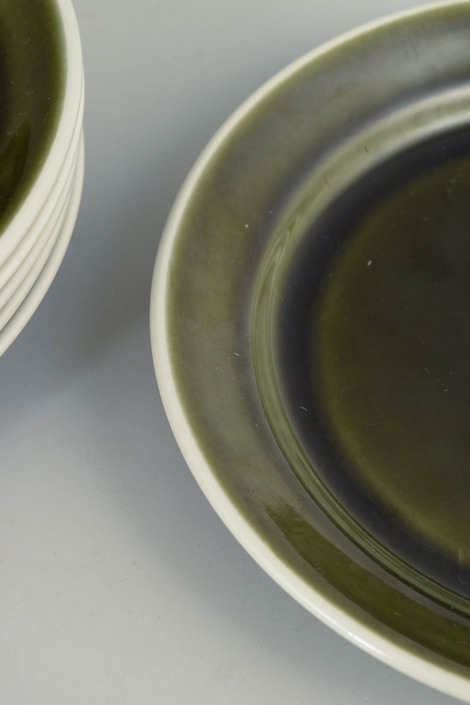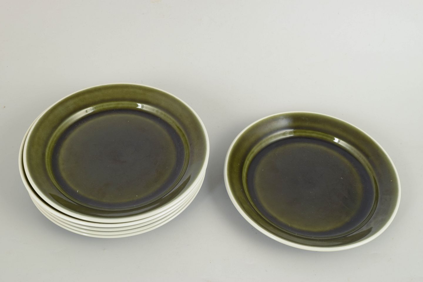 Sæt bestående af seks tallerkener i stentøj fra Vardag-serien med karakteristisk grøn glasur. Enkle og funktionelle former skabt til hverdagsbrug med et klart skandinavisk modernistisk udtryk.