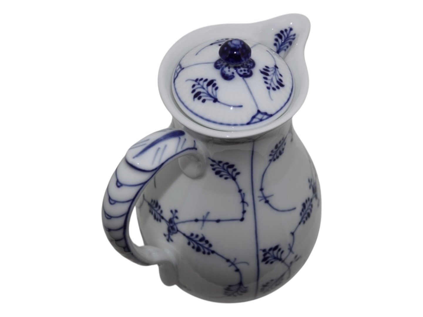 Royal Copenhagen Musselmalet Riflet, sjælden chokoladekande med tilhørende låg.
